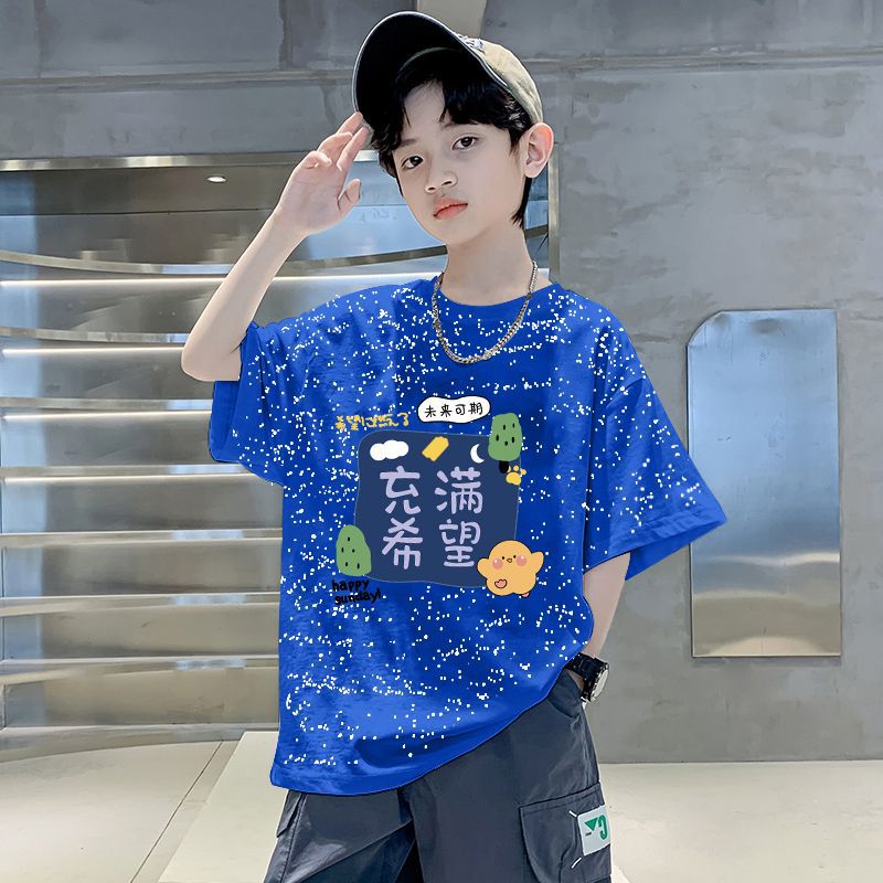 남자들의 여름 티셔츠 면 중대형 어린이 반팔 손수건 2025 새로운 도착 여름 반소매 유행 게슈타포 탑