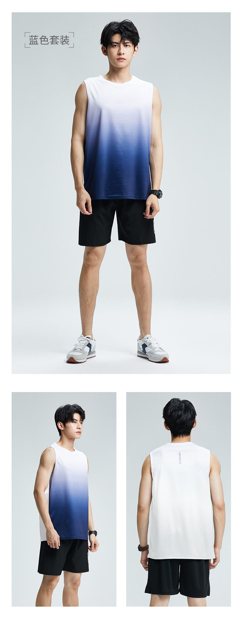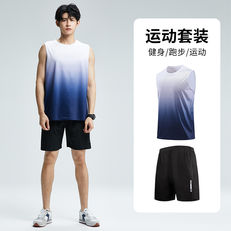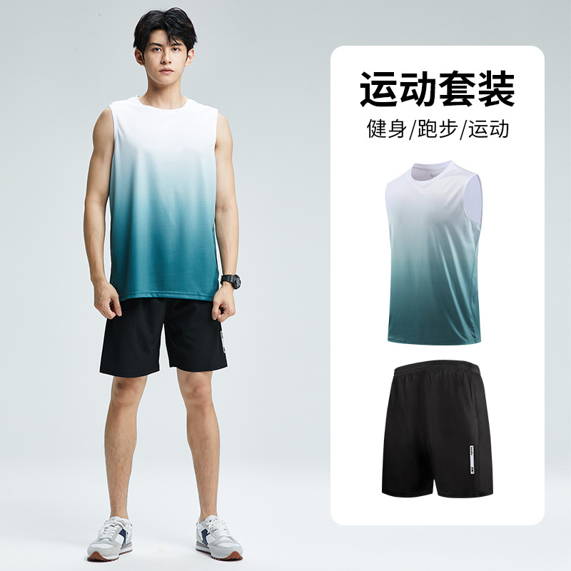 조끼 스포츠웨어 세트 남자 여름 느슨한 피트니스 옷 빠른 건조 농구 장비 훈련 달리기 민소매 티셔츠스토어 가기