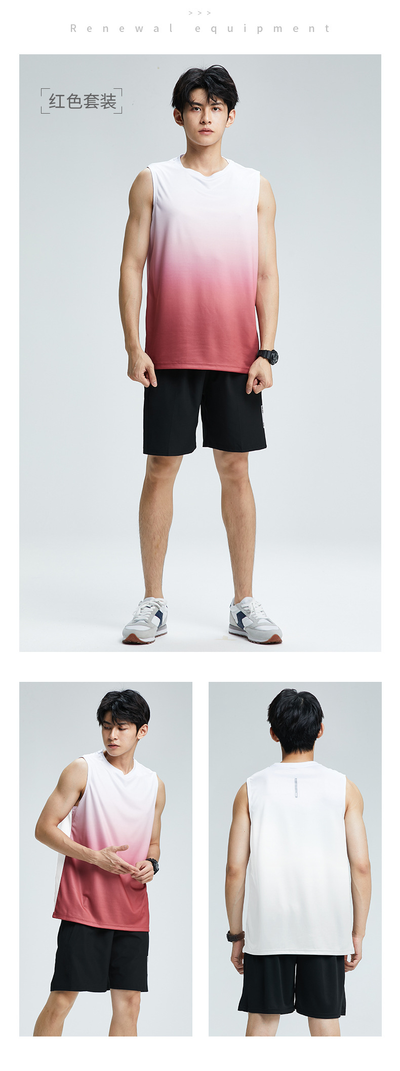 조끼 스포츠웨어 세트 남자 여름 느슨한 피트니스 옷 빠른 건조 농구 장비 훈련 달리기 민소매 티셔츠
