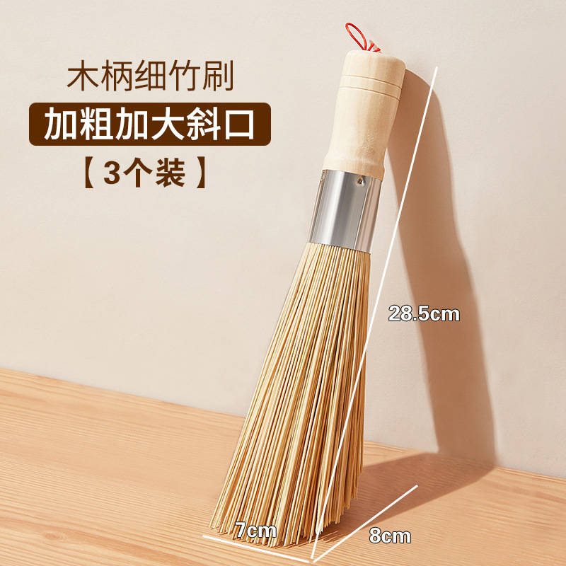 • 대나무 냄비 브러시 - 비스듬한 입이 두꺼워지고 확대됨 [3개 팩]