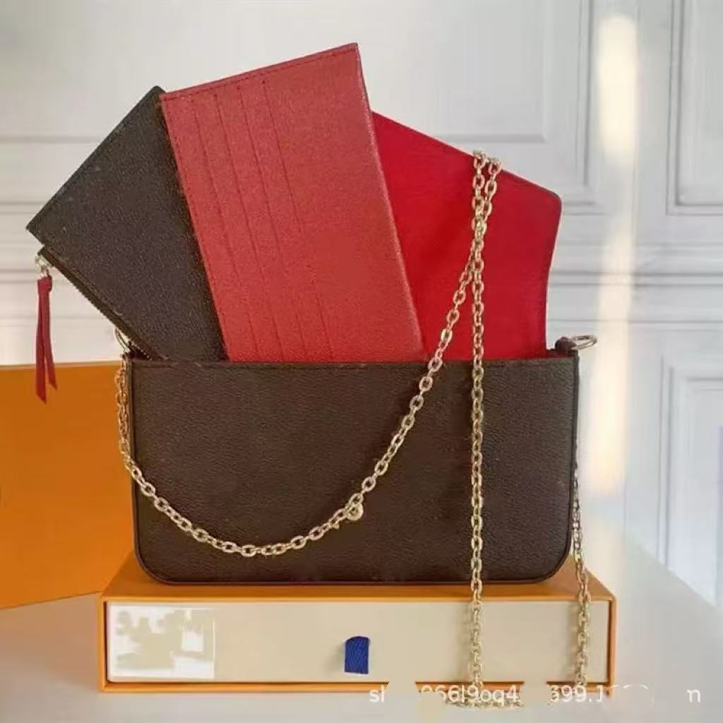 2024 새로운 당나귀 여성 가방 오래 된 꽃 3 대 1 체인 가방 정품 가죽 손 봉투 어깨 크로스 바디 한국 스타일