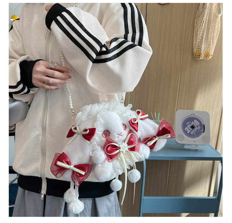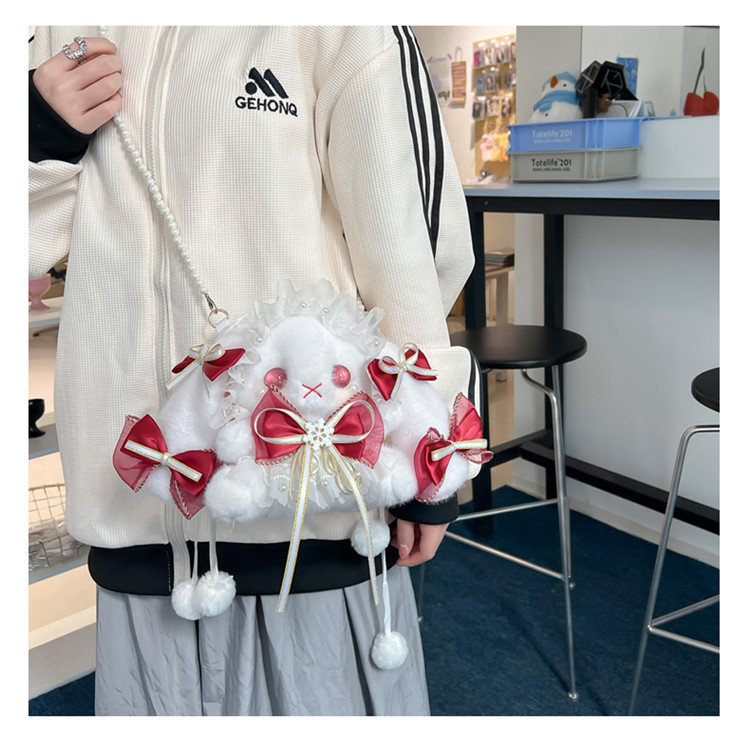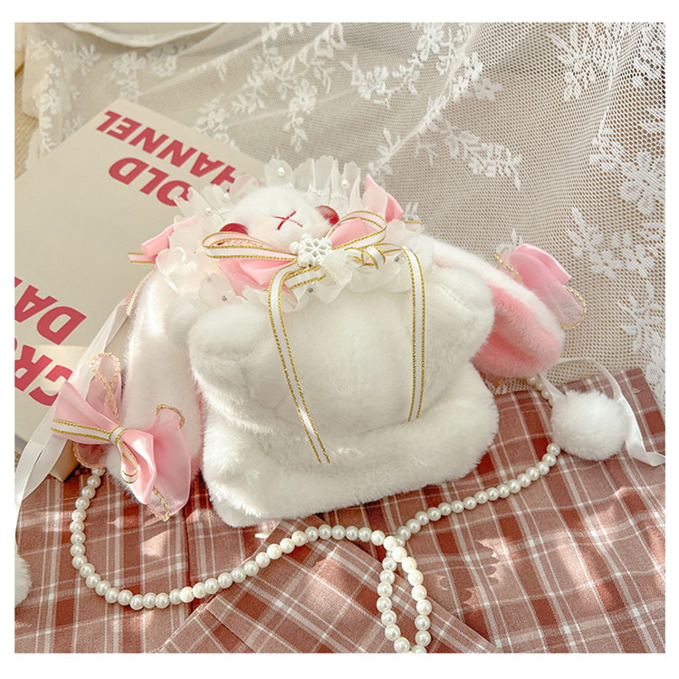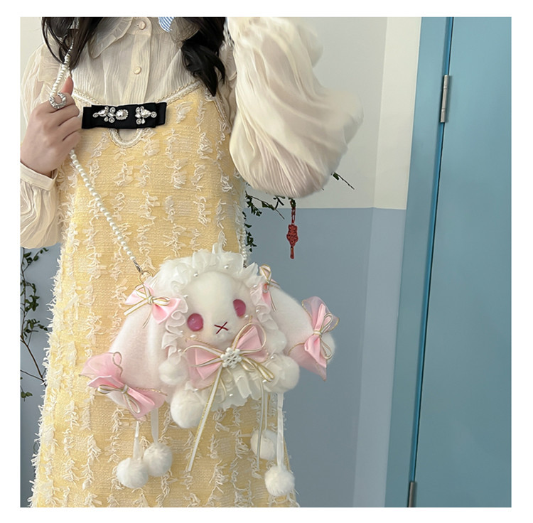 로리 일본 로리타 토끼 가방 JK 모에 소녀 토끼 가방 크로스 바디 가방 진주 핸드백 소녀 귀여운 가방