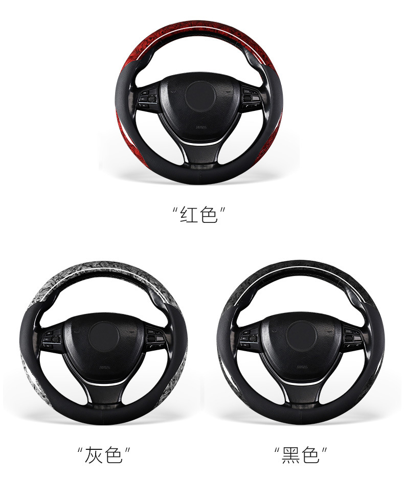 자동차 복숭아나무 무늬 스티어링 휠 커버 사계절용 미끄럼 방지 땀 흡수 고급감 초박형 여름 가죽 핸들 커버 남성용