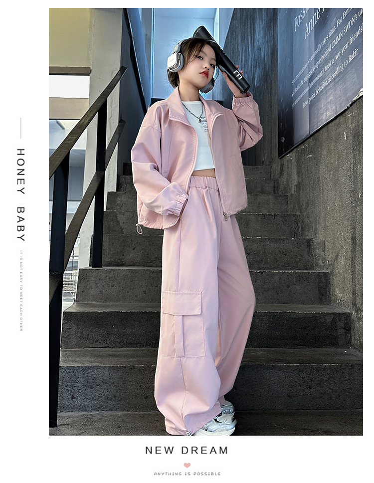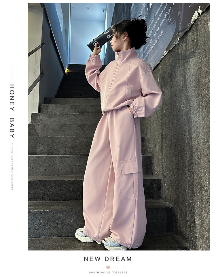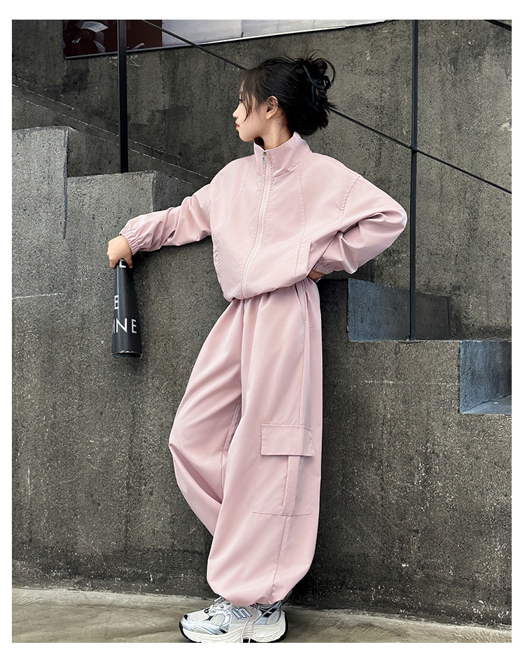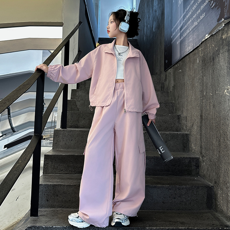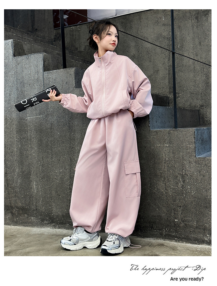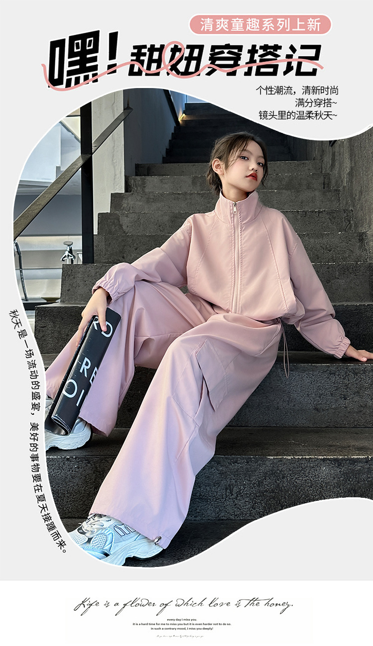 여자 세트 봄 한국 스타일 아동복 스포츠 인터넷 연예인 느슨한 자켓 학생 소녀 바지 Huzhou Zhili