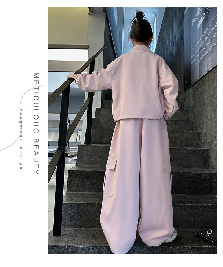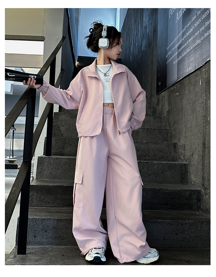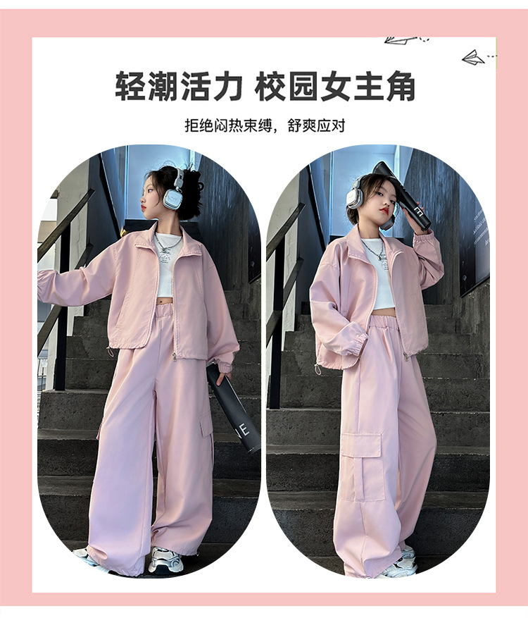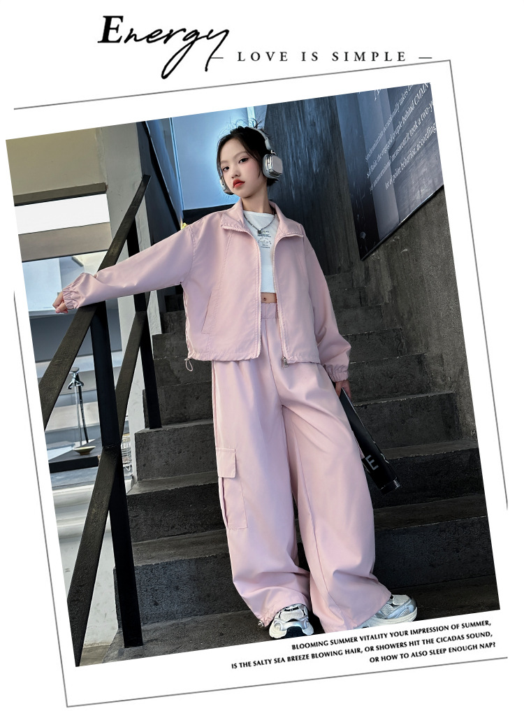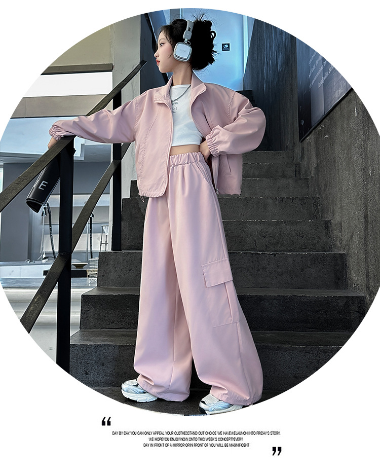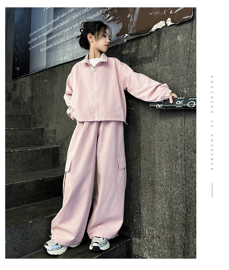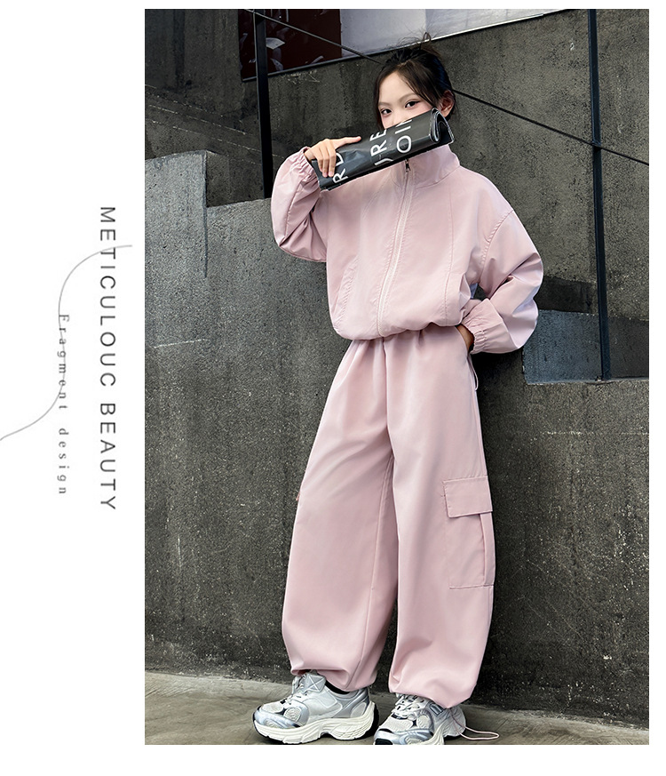여자 세트 봄 한국 스타일 아동복 스포츠 인터넷 연예인 느슨한 자켓 학생 소녀 바지 Huzhou Zhili