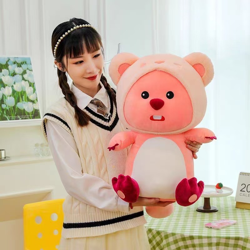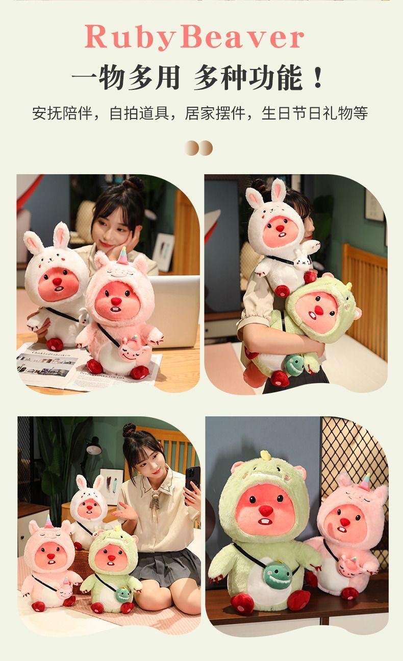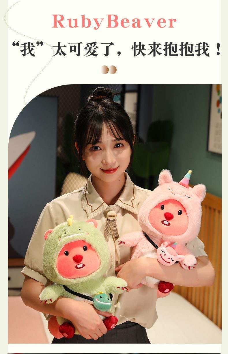 꽃다발 작은 비버 루피 헤드 기어 루비 인형 봉제 장난감 귀여운 핑크 인형 여성 생일 선물스토어 가기