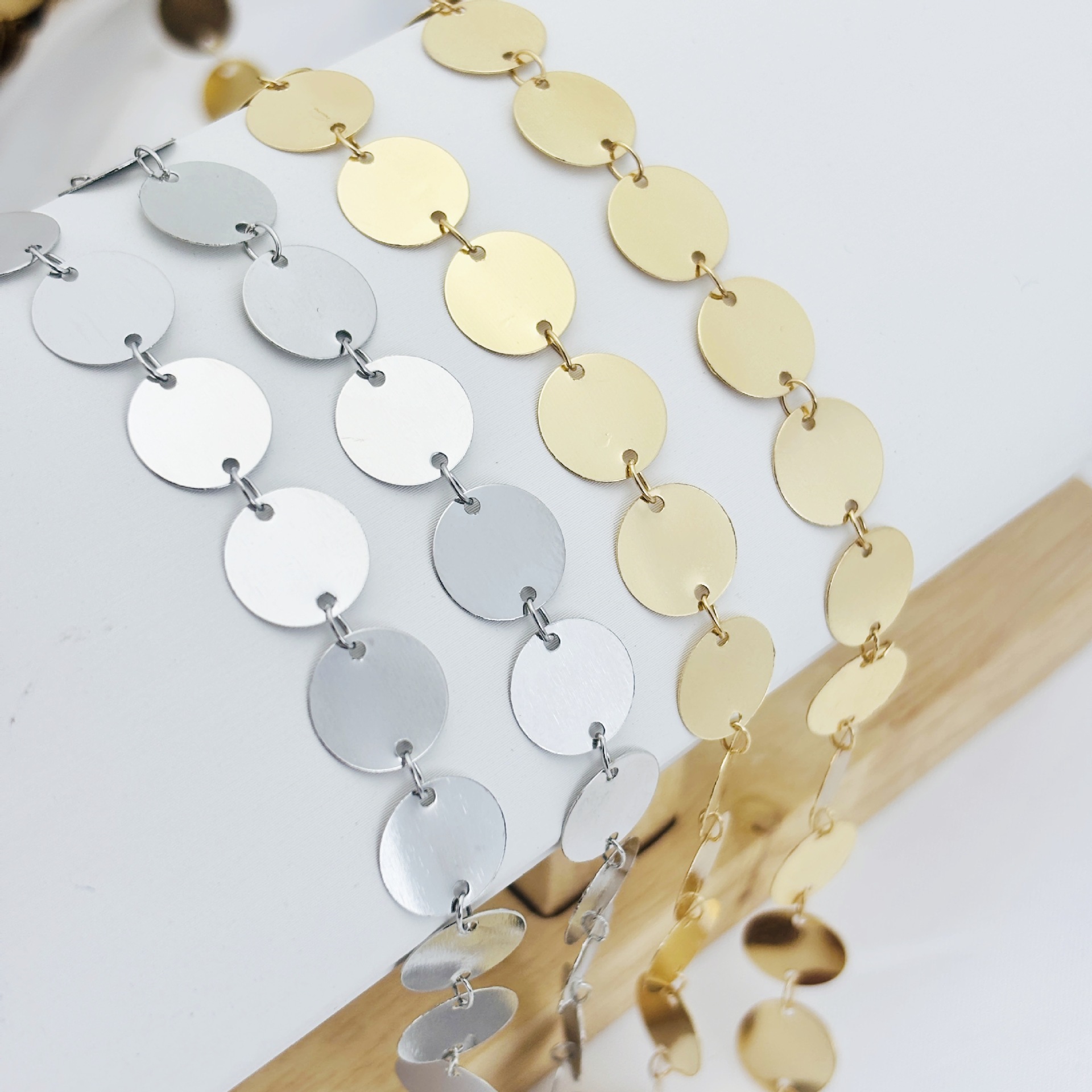 DIY 체인 구리 라운드 조각 금색과 실버 색상 보존 수제 커튼 샹들리에 매달려 보석 홈 인테리어 어셈블리 스팽글 체인