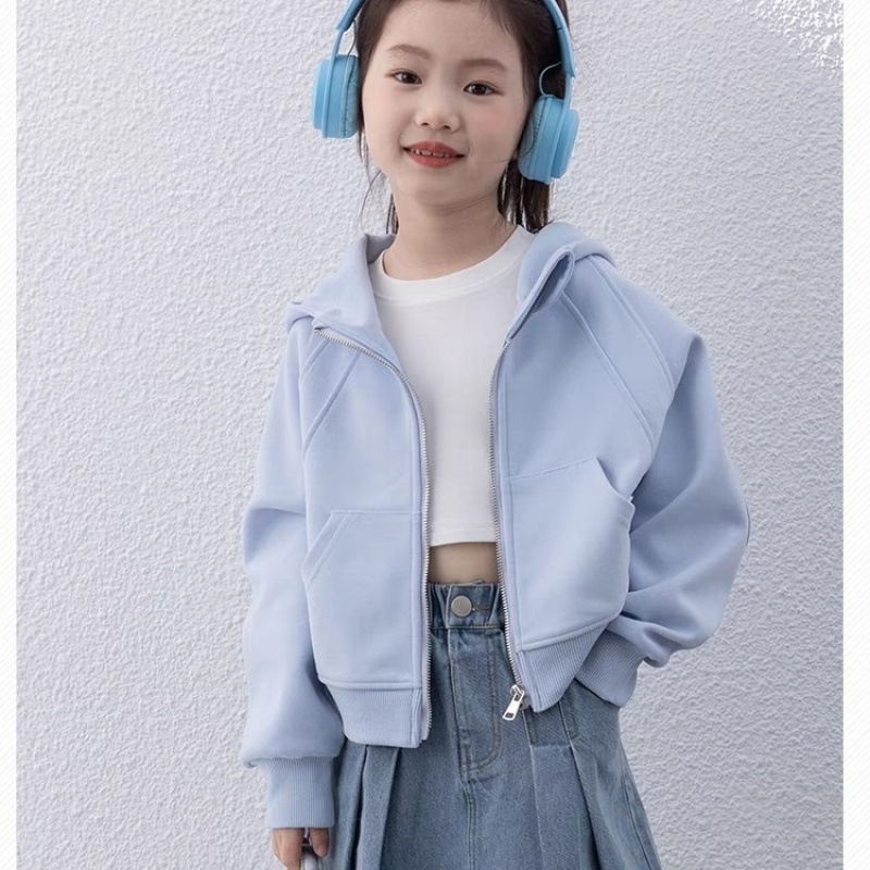 소녀 짧은 후드 코트 봄 새로운 어린이 서양식 스포츠 코트 봄과 가을 중대형 어린이 조수 지퍼 셔츠