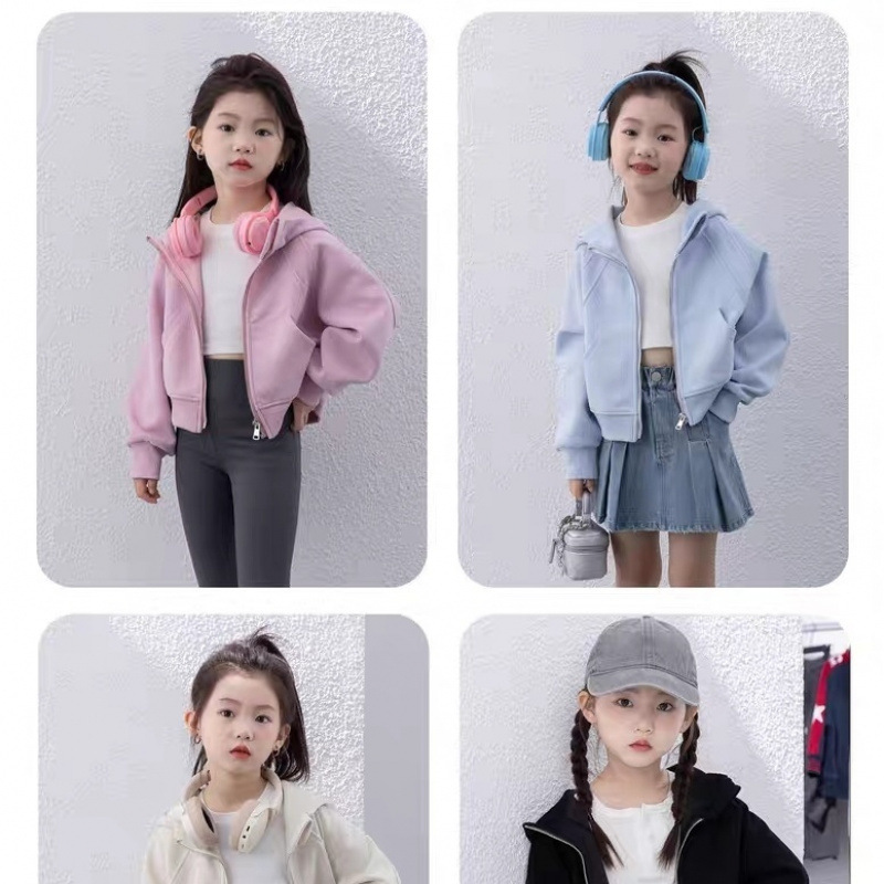 소녀 짧은 후드 코트 봄 새로운 어린이 서양식 스포츠 코트 봄과 가을 중대형 어린이 조수 지퍼 셔츠스토어 가기