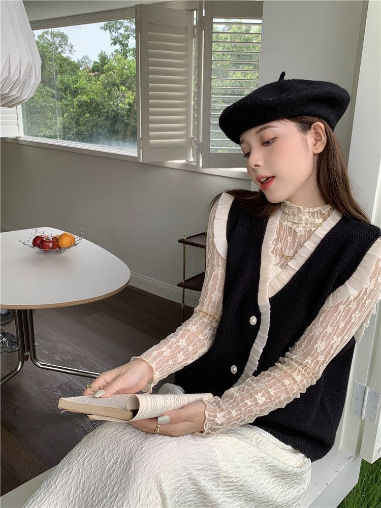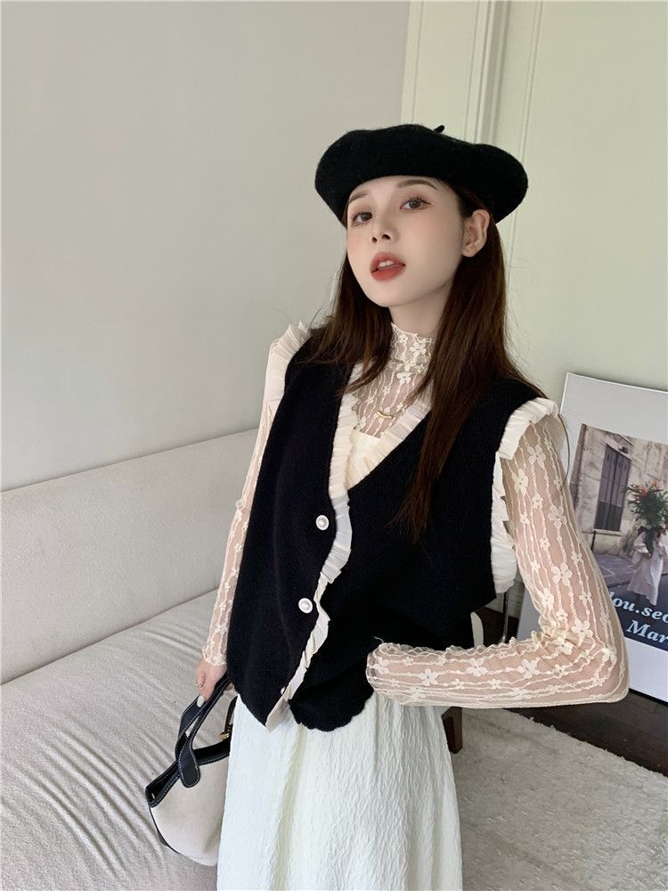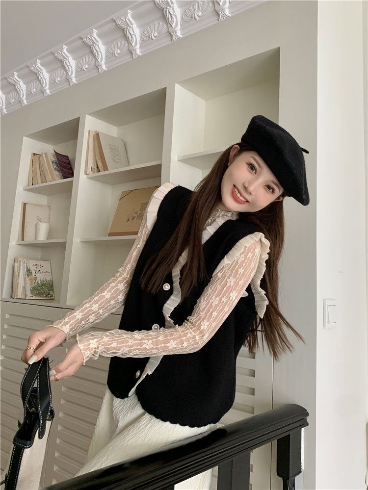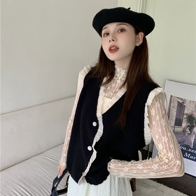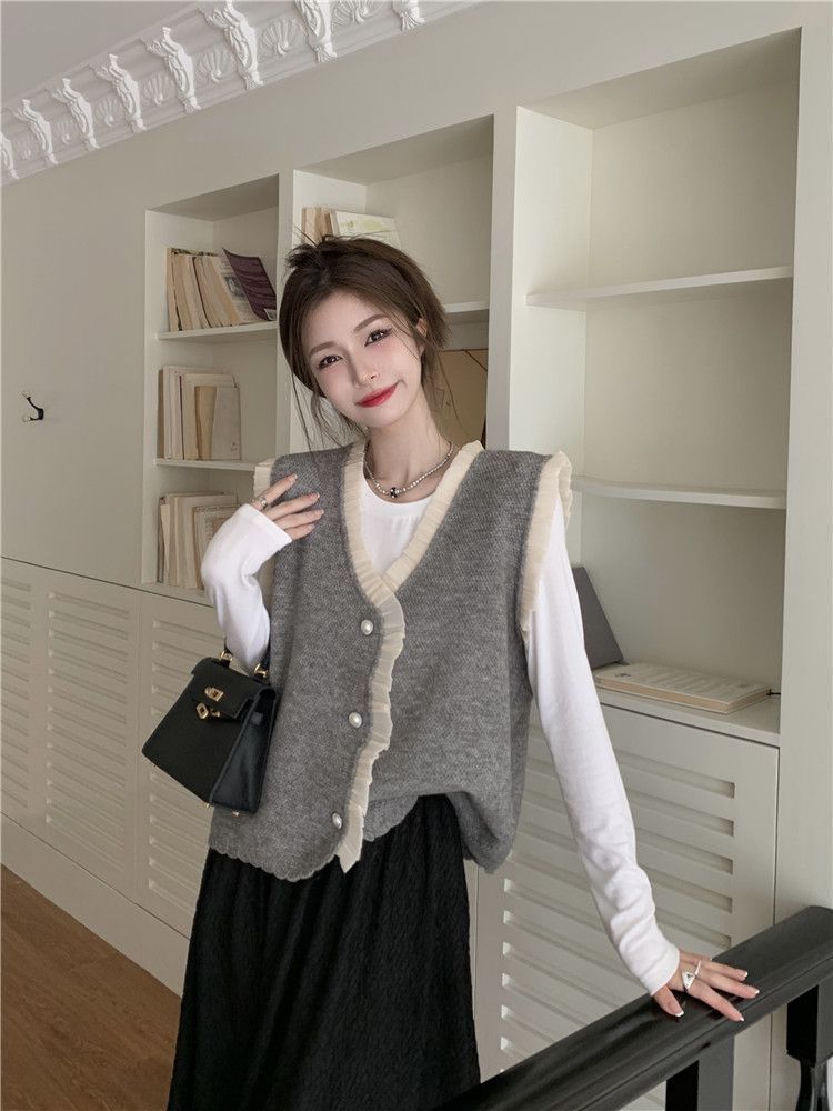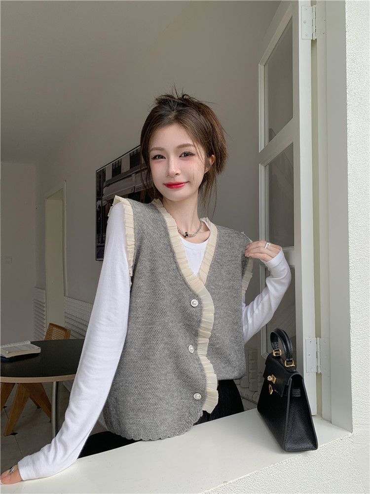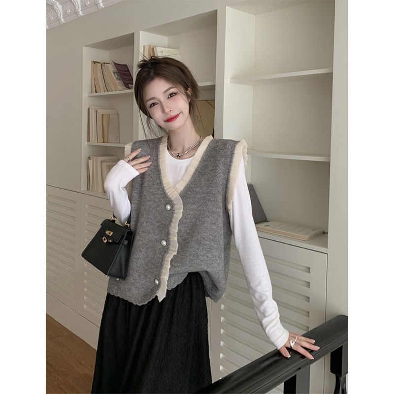 작은 샤넬 스타일 니트 조끼 여성용 내복 2025 가을과 겨울 새로운 싱글 가슴 패션 스택 재킷스토어 가기