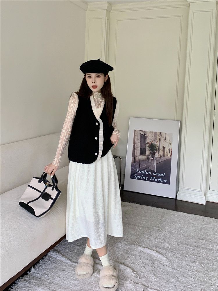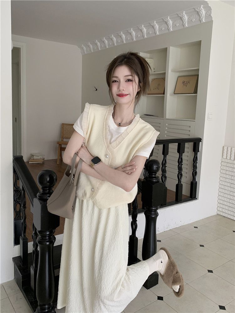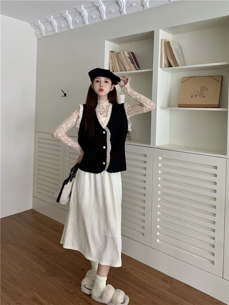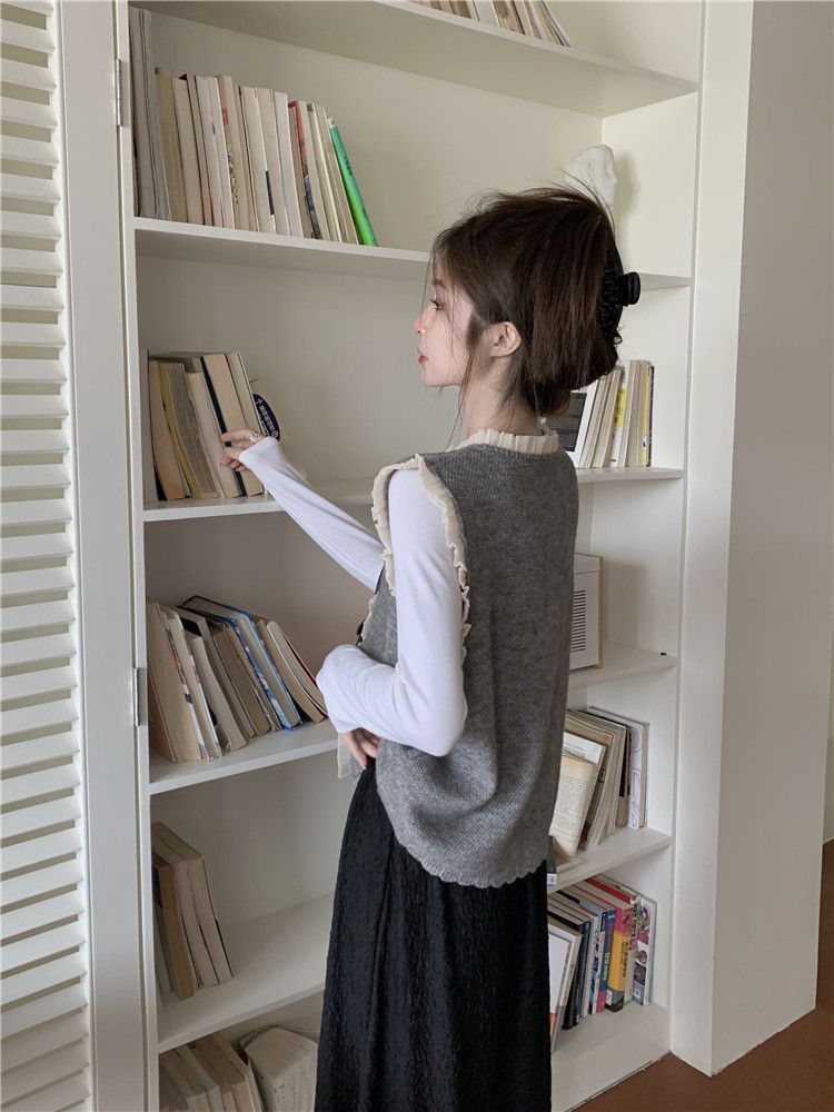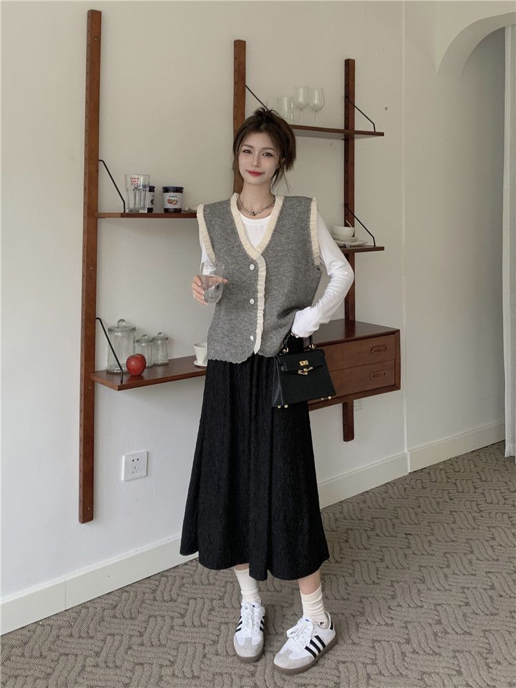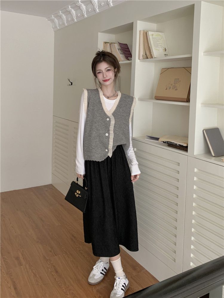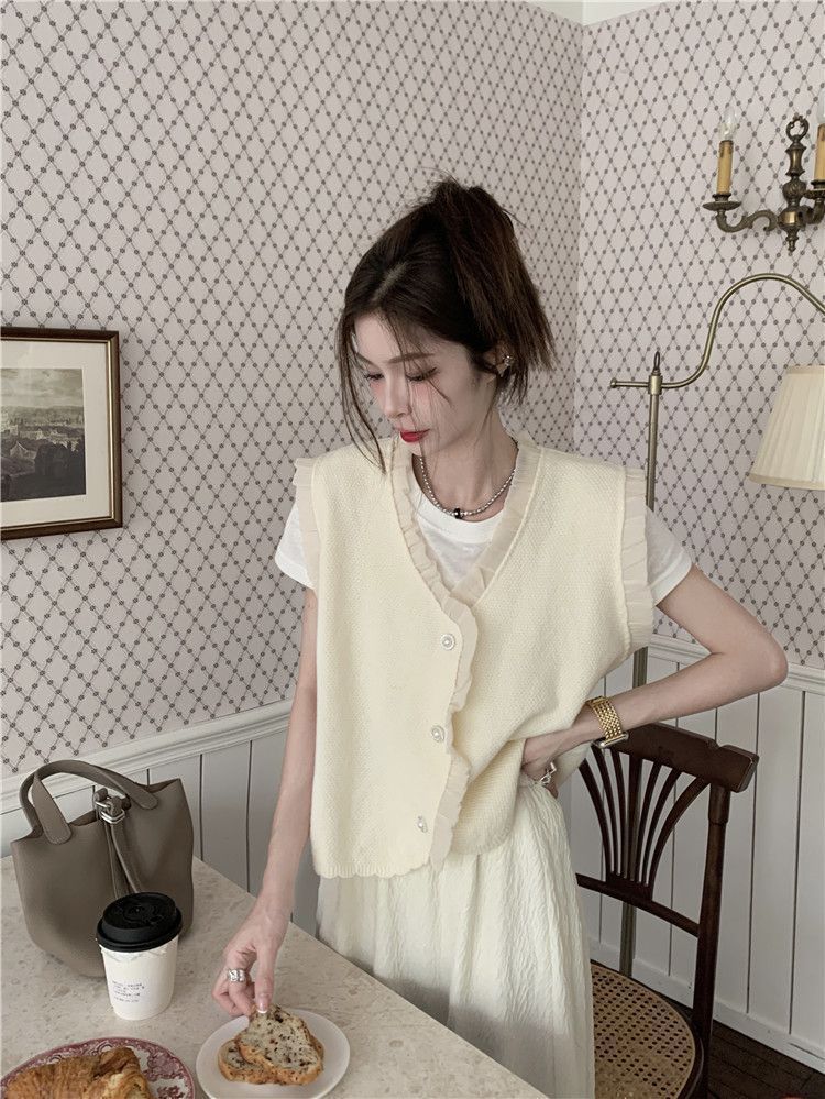 작은 샤넬 스타일 니트 조끼 여성용 내복 2025 가을과 겨울 새로운 싱글 가슴 패션 스택 재킷스토어 가기