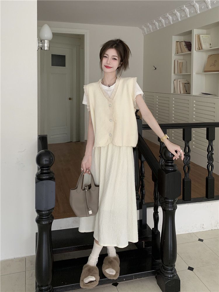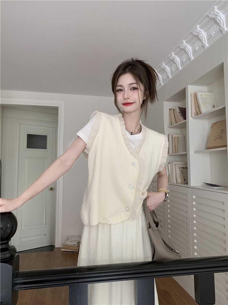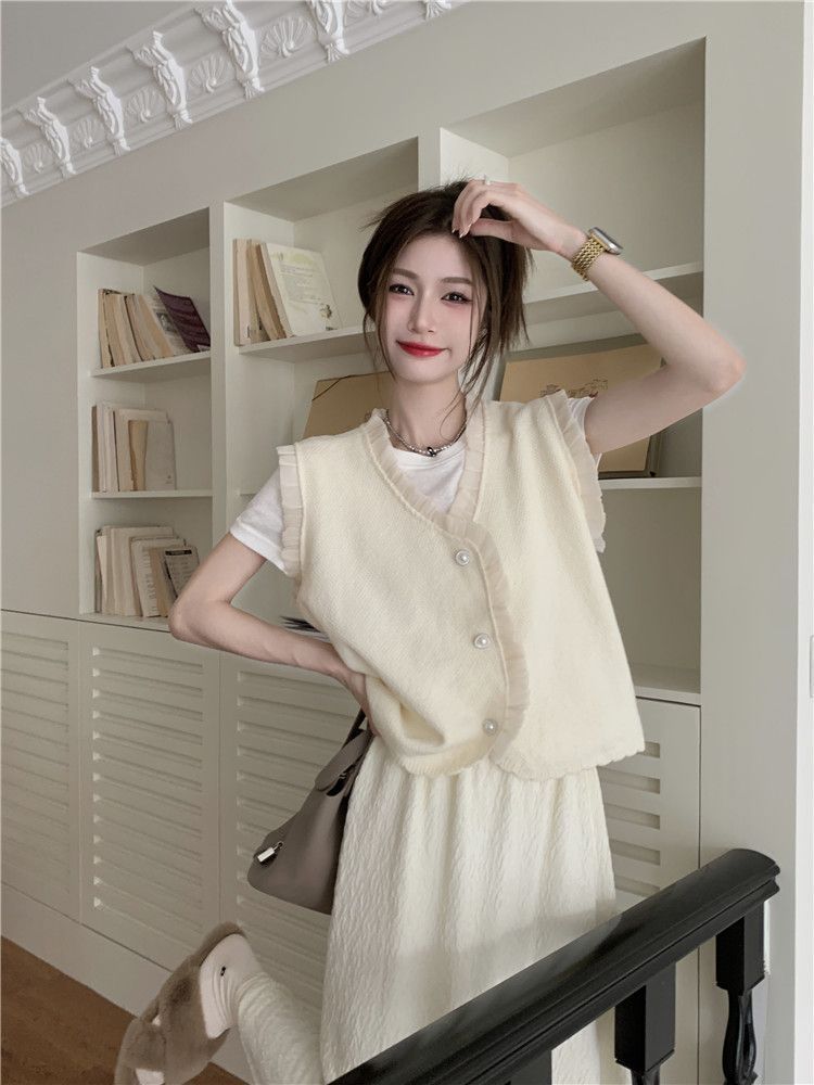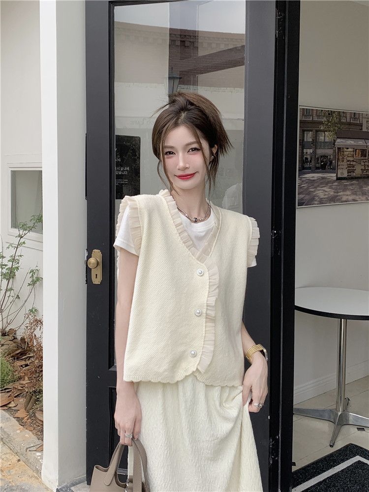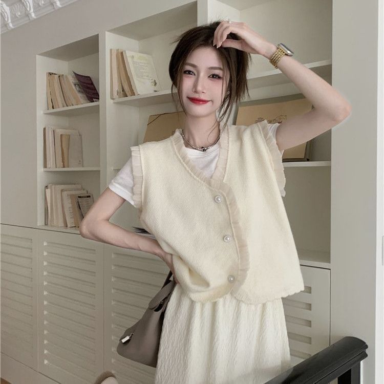작은 샤넬 스타일 니트 조끼 여성용 내복 2025 가을과 겨울 새로운 싱글 가슴 패션 스택 재킷
