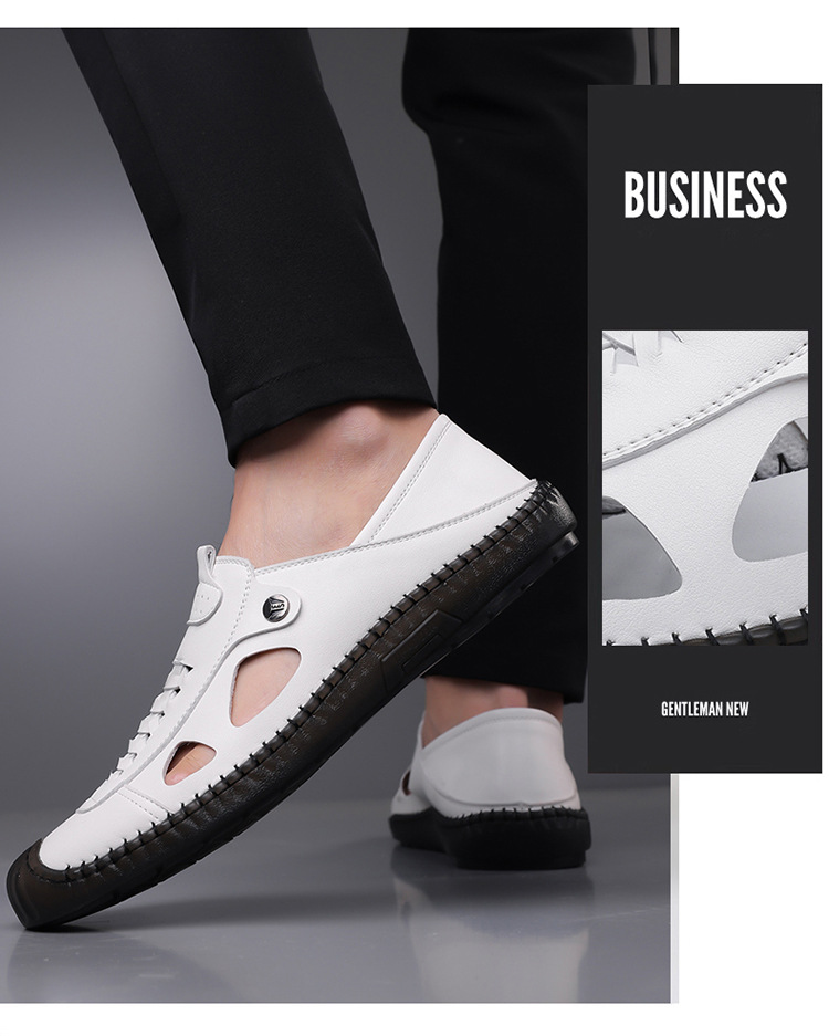 샌들 여름 통기성 2025 새로운 캐주얼 비치 샌들 남성 할로우 홀 신발 남성 원피스 헤어