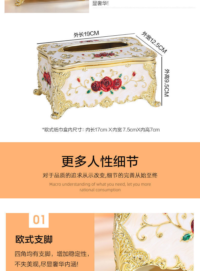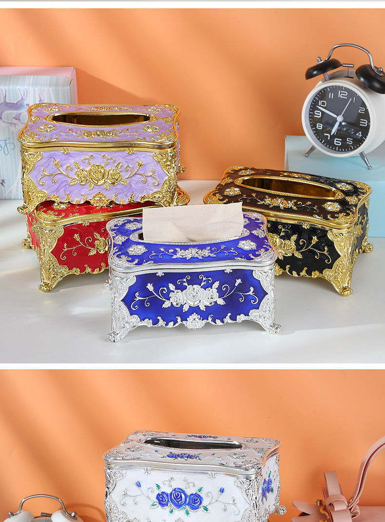 창조적 인 유럽 스타일의 대용량 티슈 박스 금속 하이 엔드 거실 화장실 가정용 호텔 종이 상자 드롭 방지 럭셔리스토어 가기