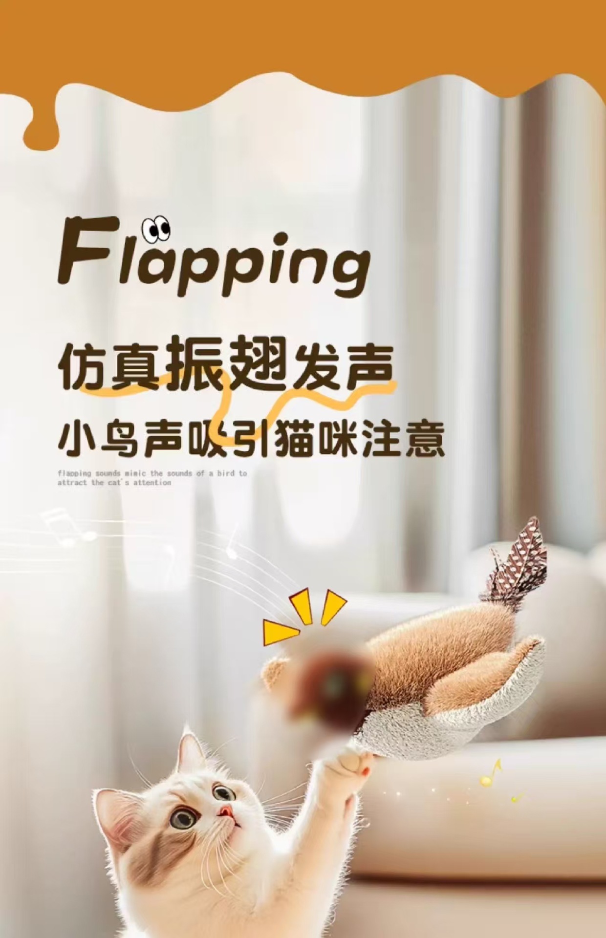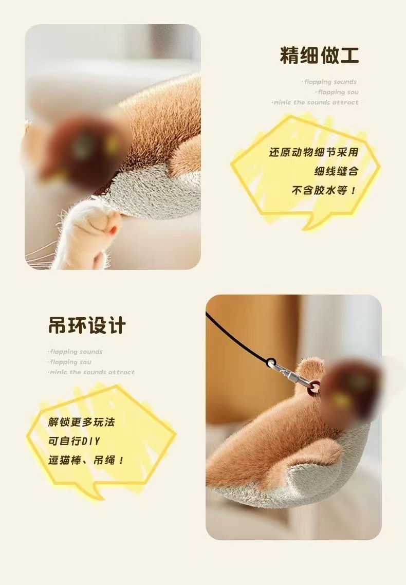 시뮬레이션 고양이 장난감, 전기 봉제 새, 시뮬레이션 참새, 자기 자극 및 지루함 해소 고양이 장난감, 흔들리는 새 고양이 장난감
