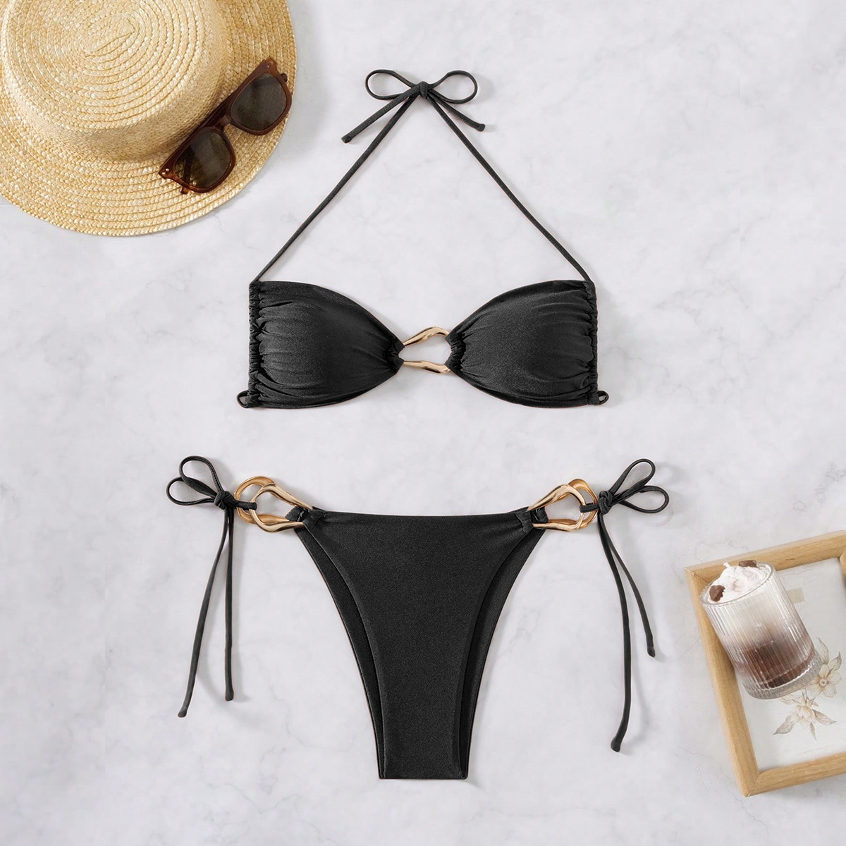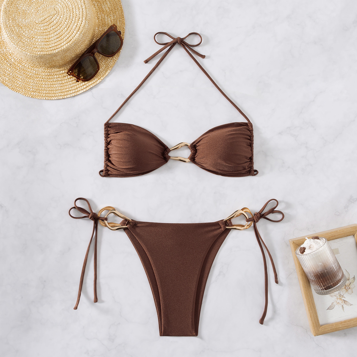 국경 간 섹시한 비키니 브래지어 세트 분할 단색 수영복 대외 무역 수집 분할 수영복 순수 욕망 수영복