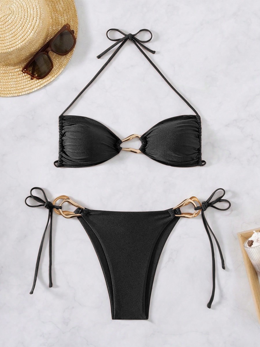 국경 간 섹시한 비키니 브래지어 세트 분할 단색 수영복 대외 무역 수집 분할 수영복 순수 욕망 수영복스토어 가기