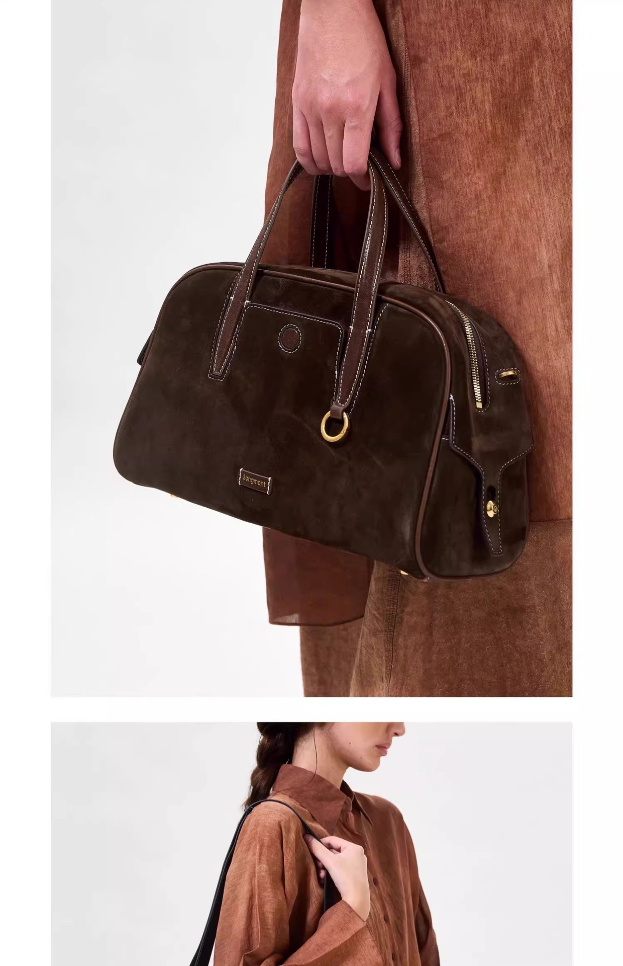 송몬트 산 느슨한 추적 시리즈 가죽 볼링 백 레트로 대용량 보스턴 핸드백스토어 가기