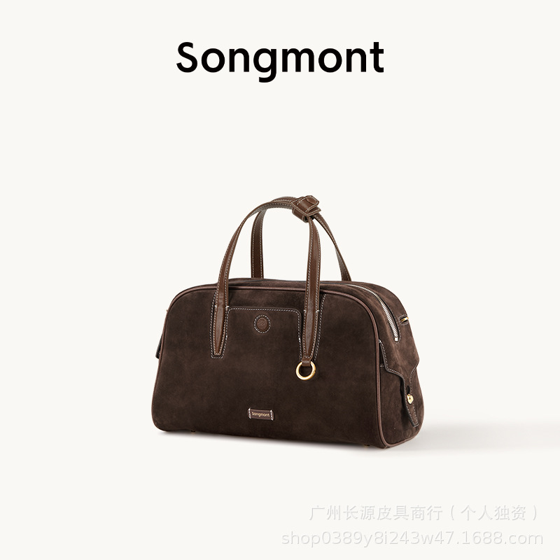 송몬트 산 느슨한 추적 시리즈 가죽 볼링 백 레트로 대용량 보스턴 핸드백