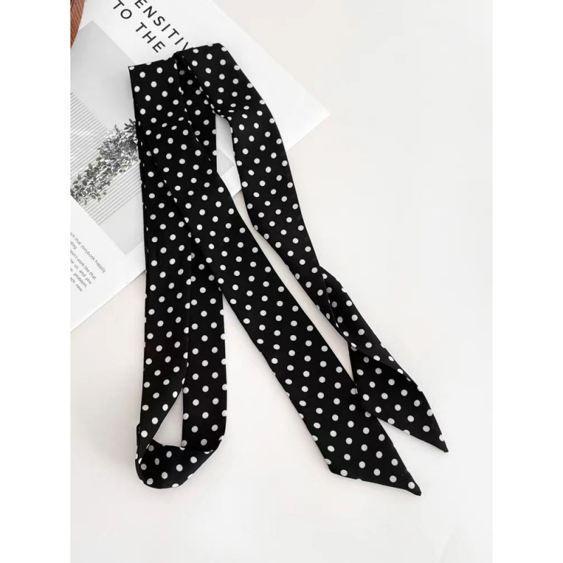 블랙 폴도트 실크 스카프 라이트 럭셔리 여성 목 헤어 밴드 봄과 여름 새로운 롱 엔드 센스 올 매치 패션 한국 스타일 롱 스카프