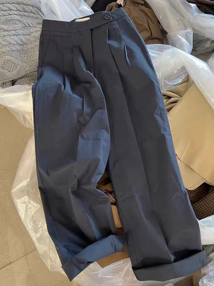 한국식 틈새 디자인 하이 엔드 그레이 바지 2025 봄과 가을 레트로 하이 허리 슬리밍 주름 세트 바지스토어 가기