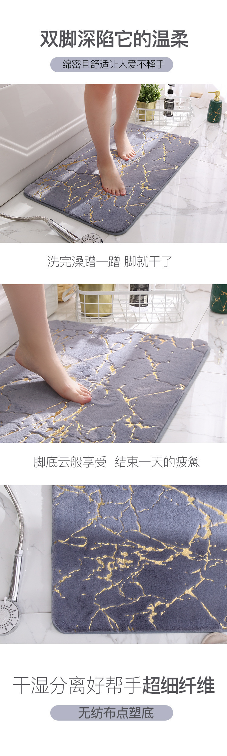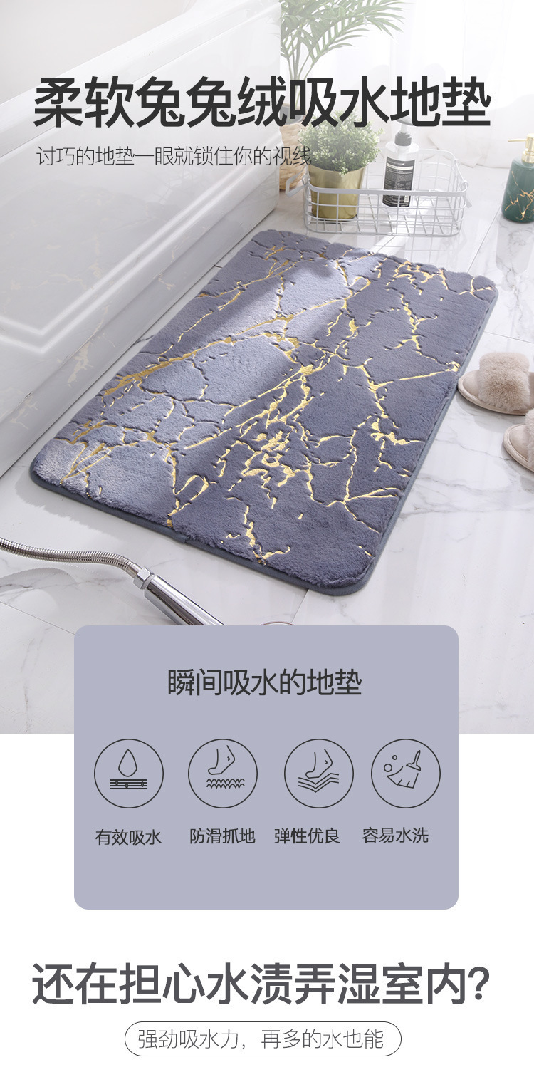국경 간 아마존 골드 패턴 모조 토끼 머리 두꺼운 흡수 욕실 매트 화장실 문 매트스토어 가기