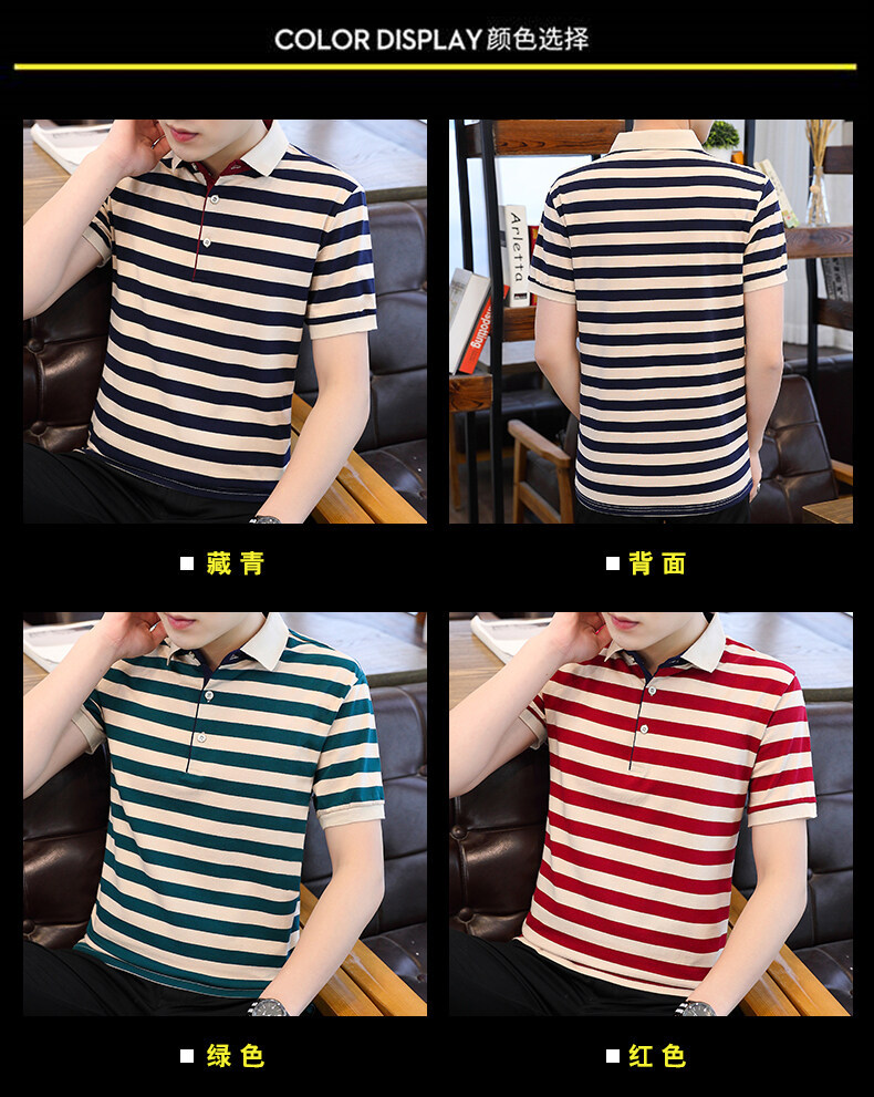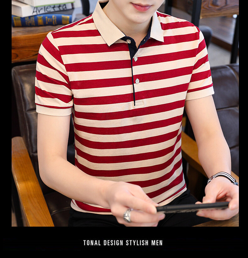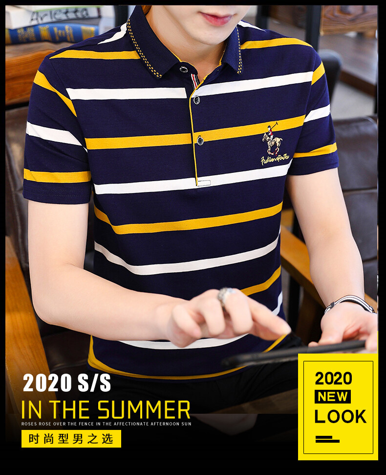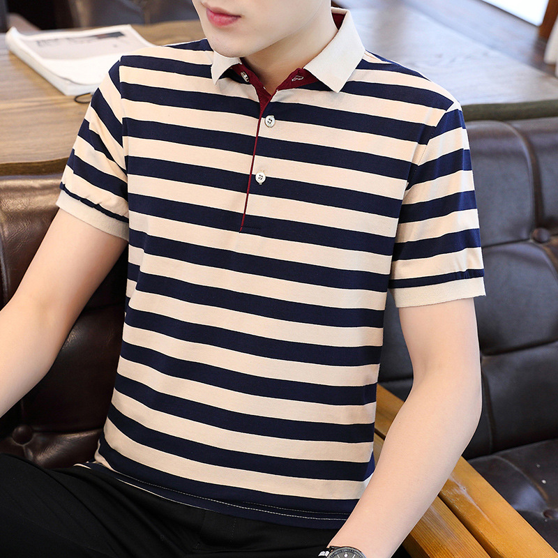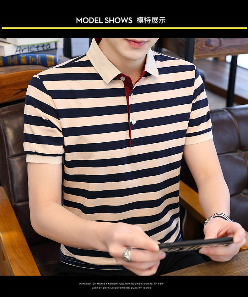 반팔 티셔츠 남자 2024 새로운 여름 패션 인기 줄무늬 청소년 학생 캐주얼 올 매치 비즈니스 폴로 셔츠스토어 가기