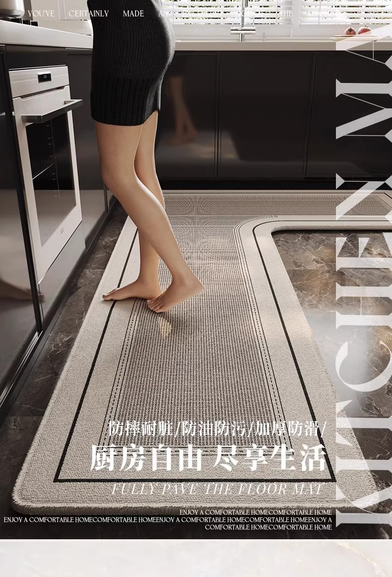 현대 빛 럭셔리 L 자형 주방 바닥 매트 미끄럼 방지 및 내유성 발 매트 물 흡수 및 오일 흡수 높은 수준의 와이프가없는 카펫