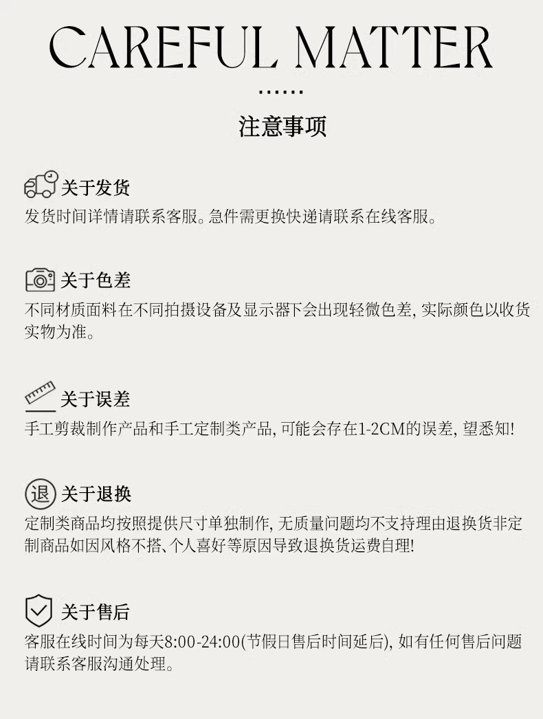 • 다른 사이즈 맞춤 제작, 매장 전체 상담 고객 서비스(반품이나 교환 불가)