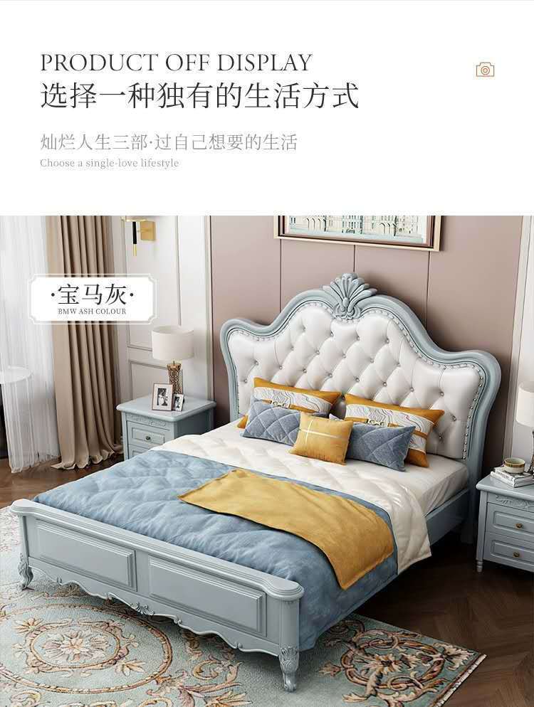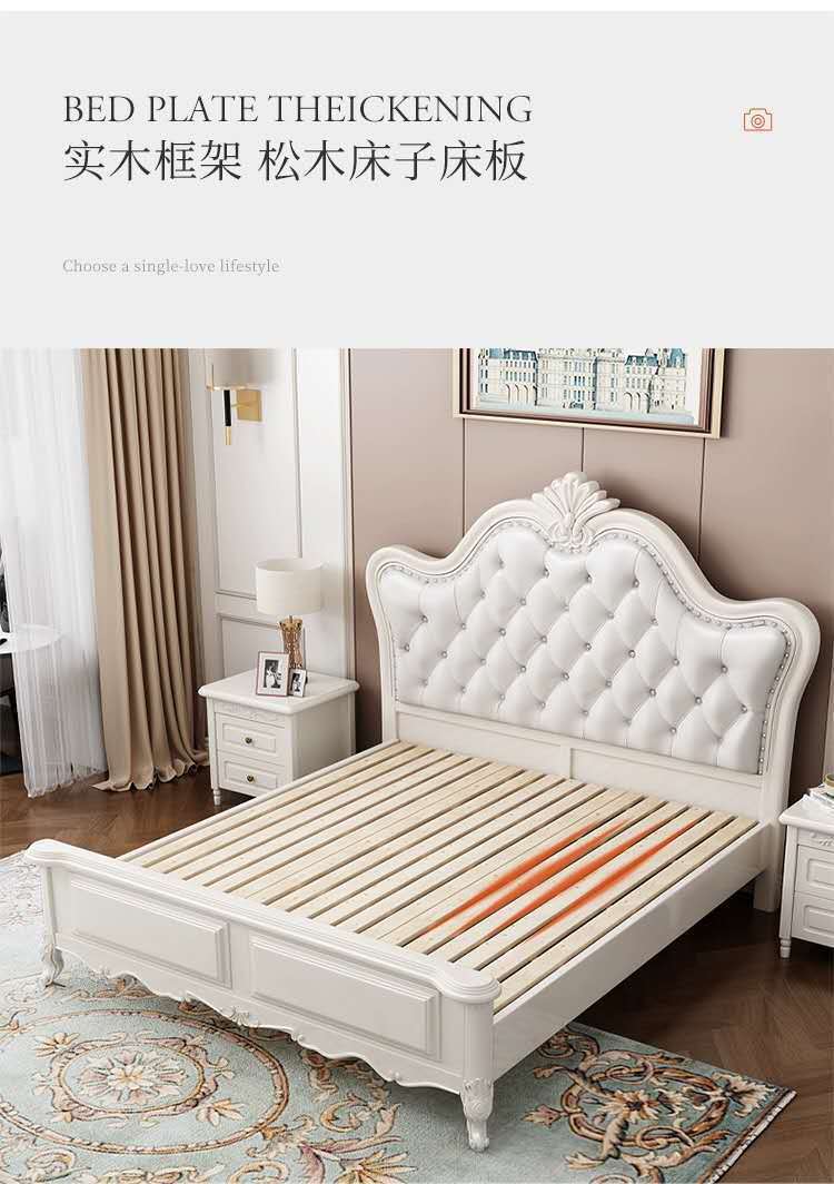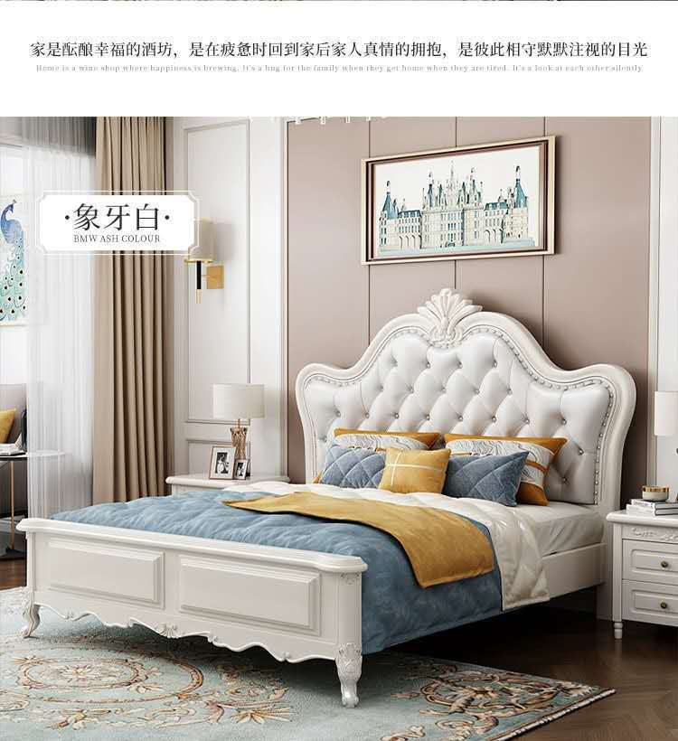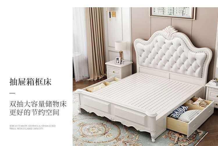 유럽 스타일 단단한 나무 침대 미국 스타일 1.5M 공주 제인 유럽 스타일 화이트 1.8 m 부드러운 간단한 더블 웨딩 침대 조각스토어 가기