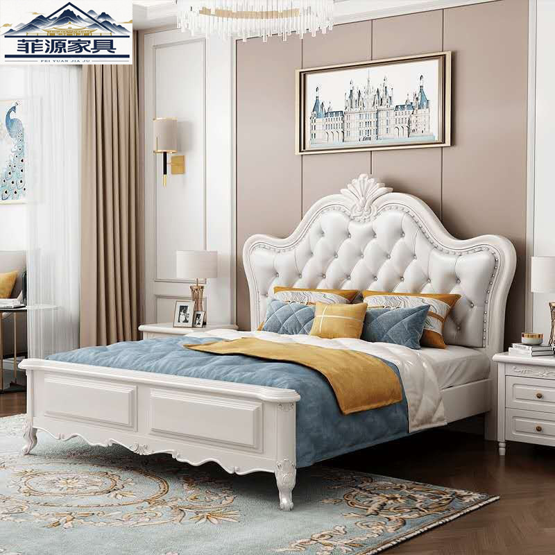 유럽 스타일 단단한 나무 침대 미국 스타일 1.5M 공주 제인 유럽 스타일 화이트 1.8 m 부드러운 간단한 더블 웨딩 침대 조각