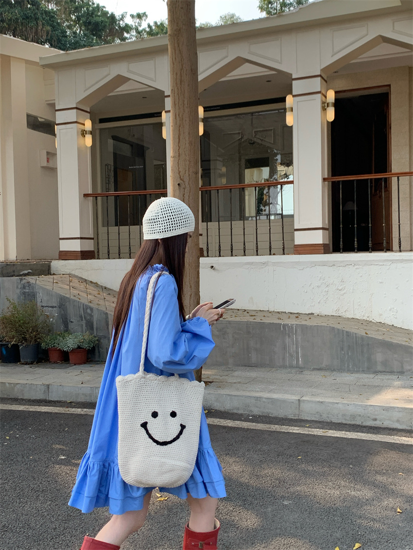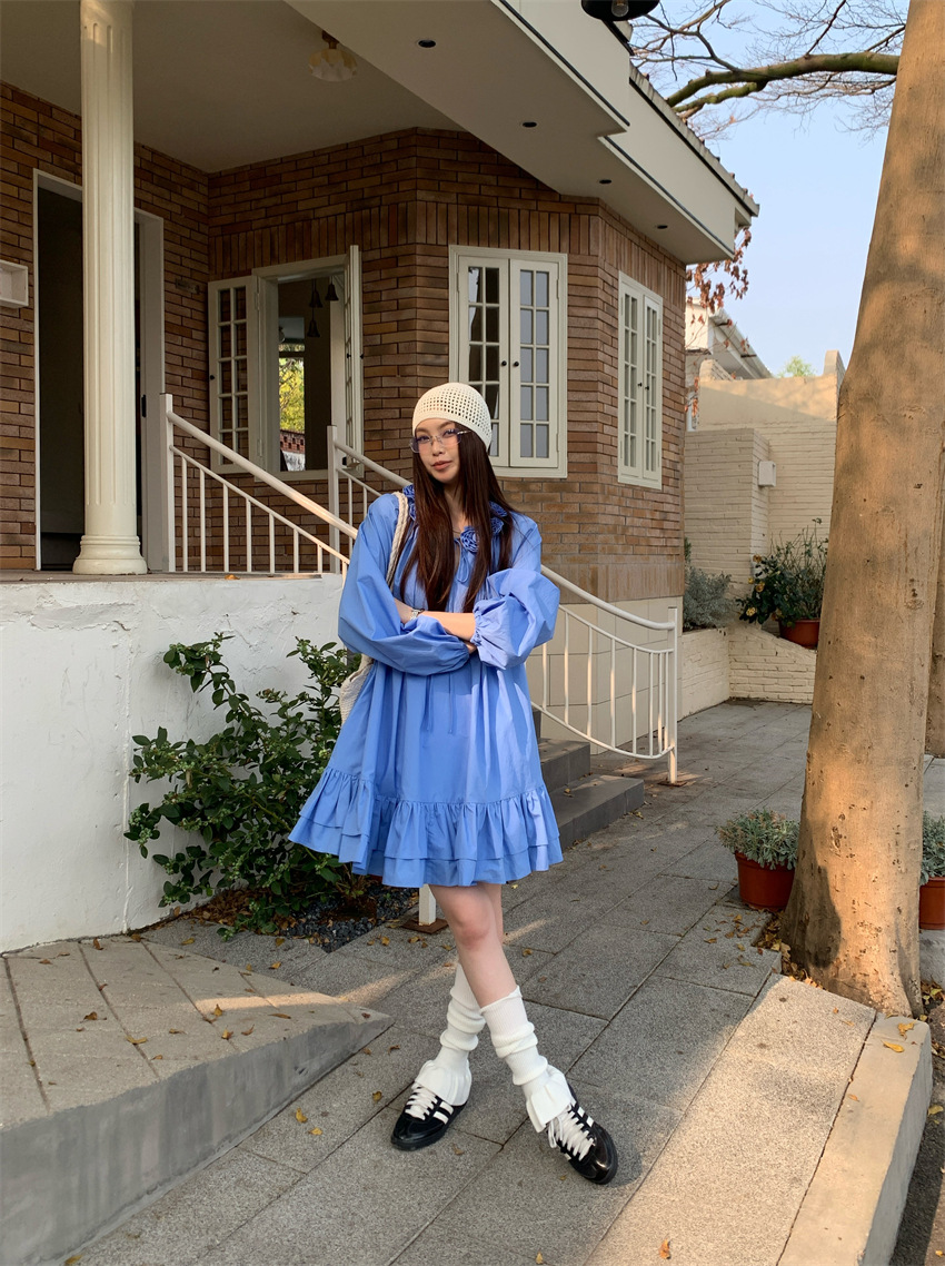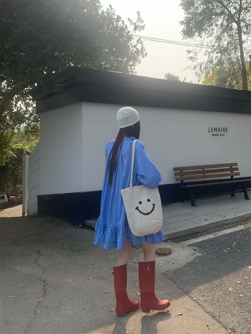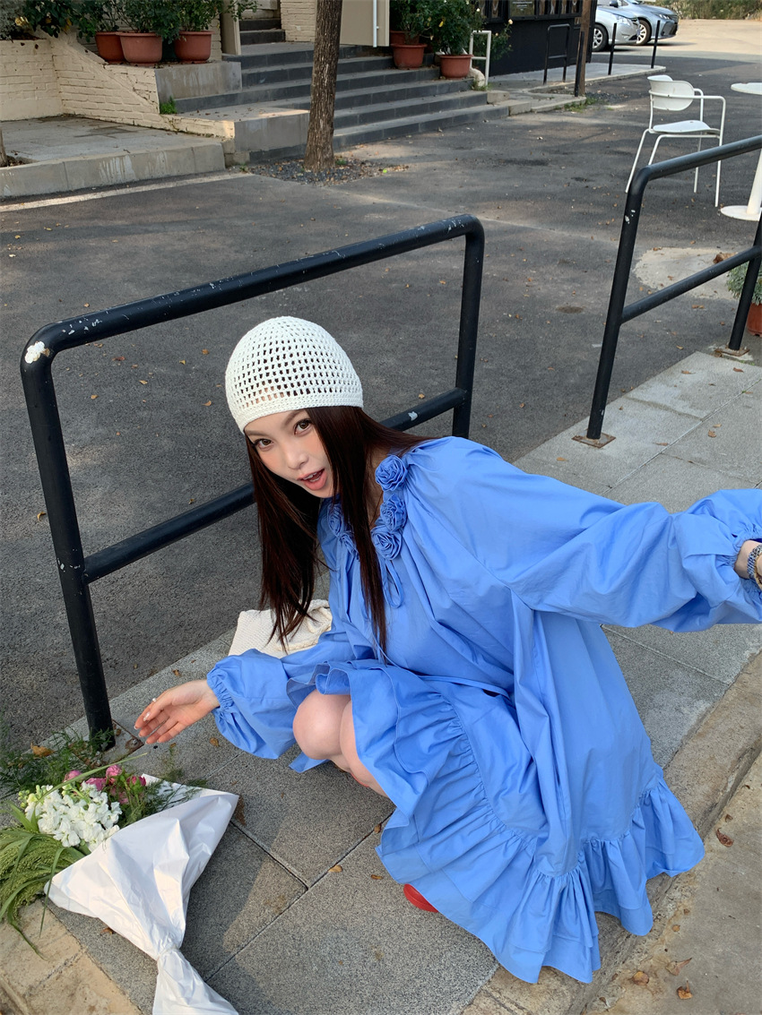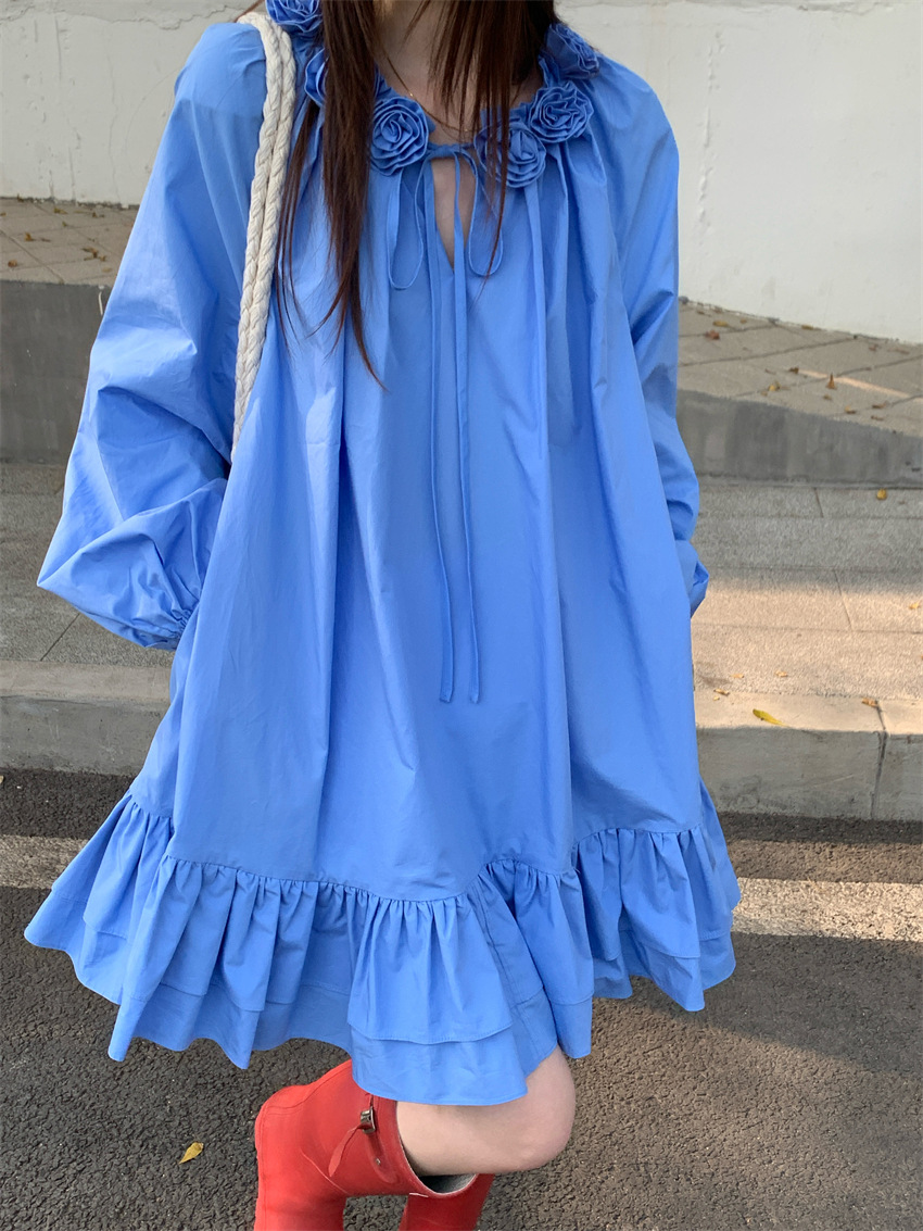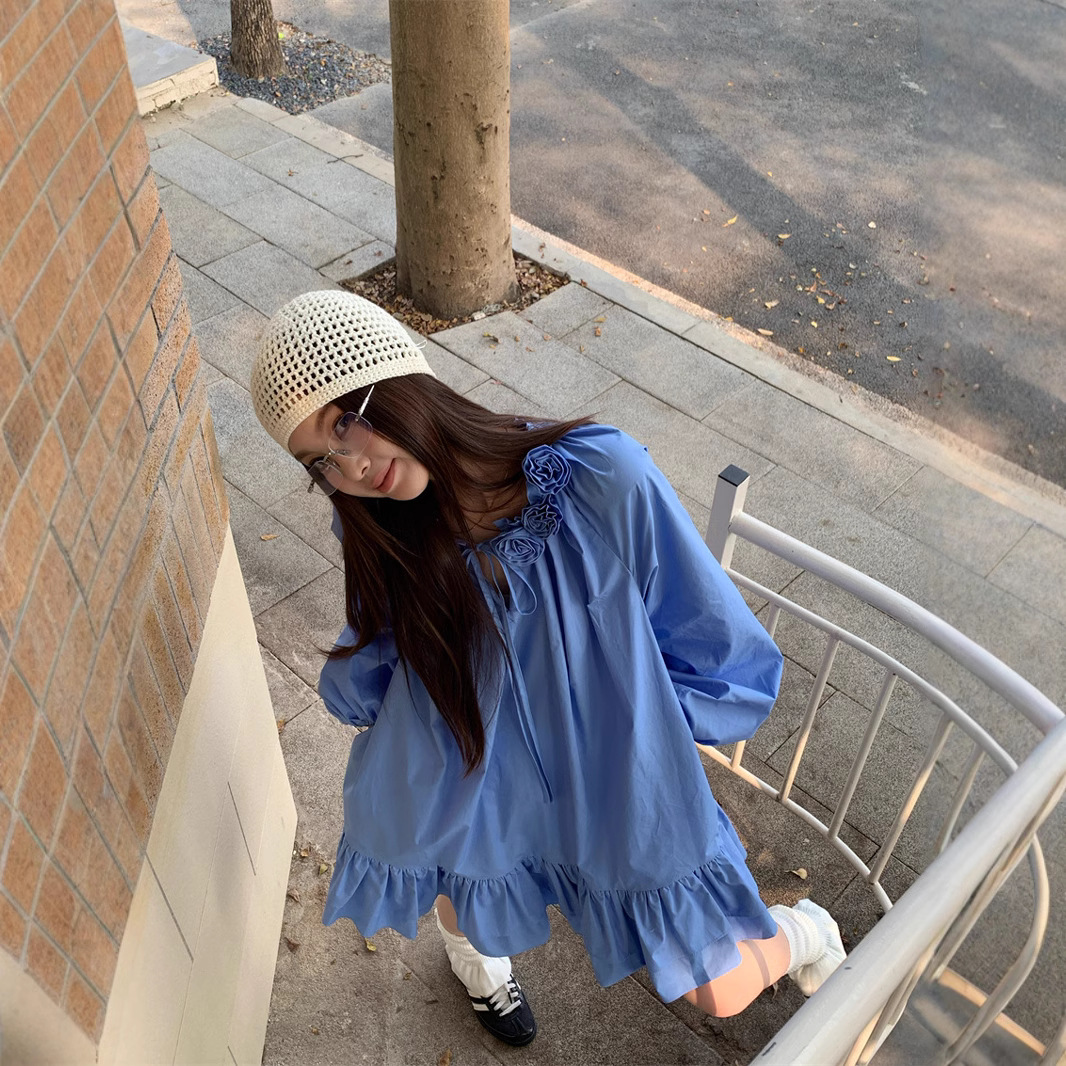 실제 한국 세련된 디자인 로즈 느슨한 원피스 여성 봄 여름 게으른 스타일 조커 원피스 77368스토어 가기