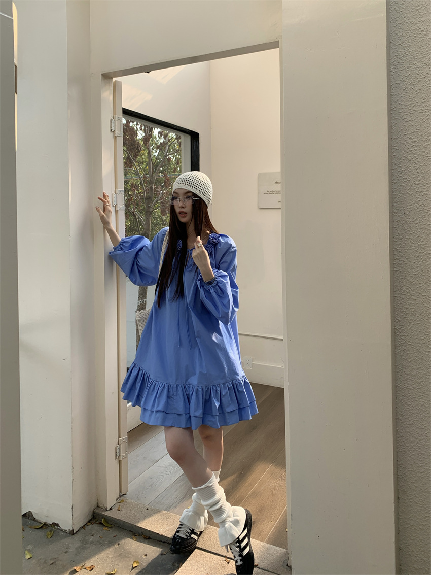 실제 한국 세련된 디자인 로즈 느슨한 원피스 여성 봄 여름 게으른 스타일 조커 원피스 77368