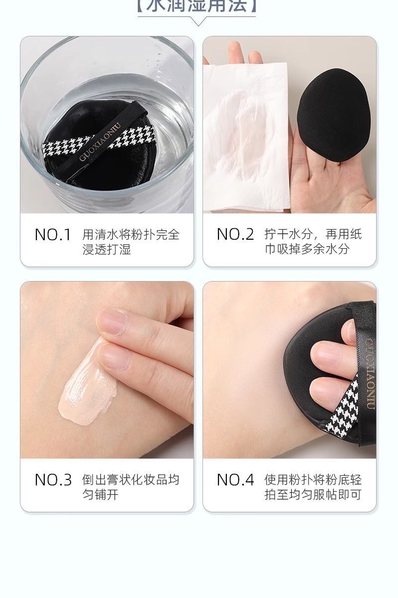 Guo Xiaoniu 파우더 퍼프 houndstooth 양면 가죽 에어 쿠션 파우더 퍼프 파운데이션 특수 메이크업 슈퍼 두껍고 습식