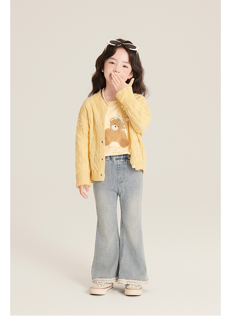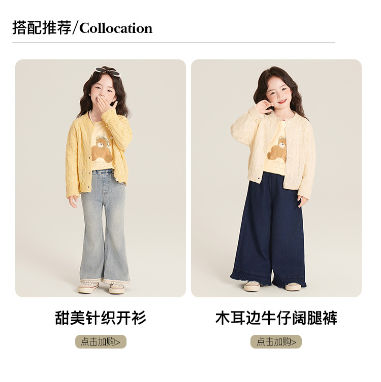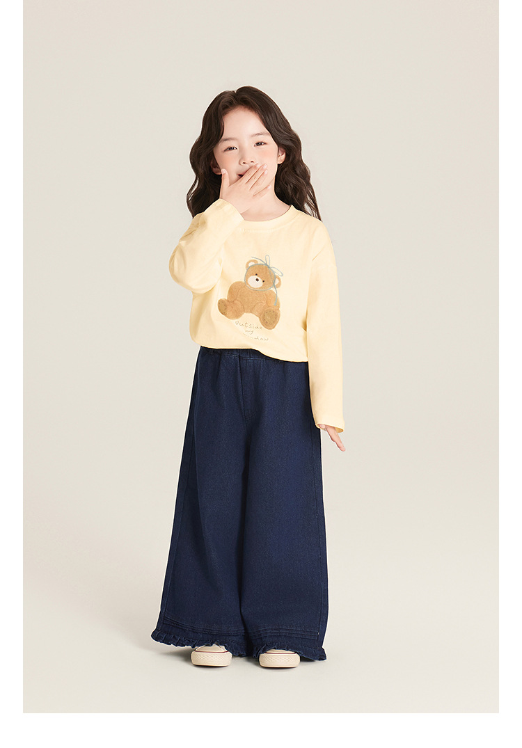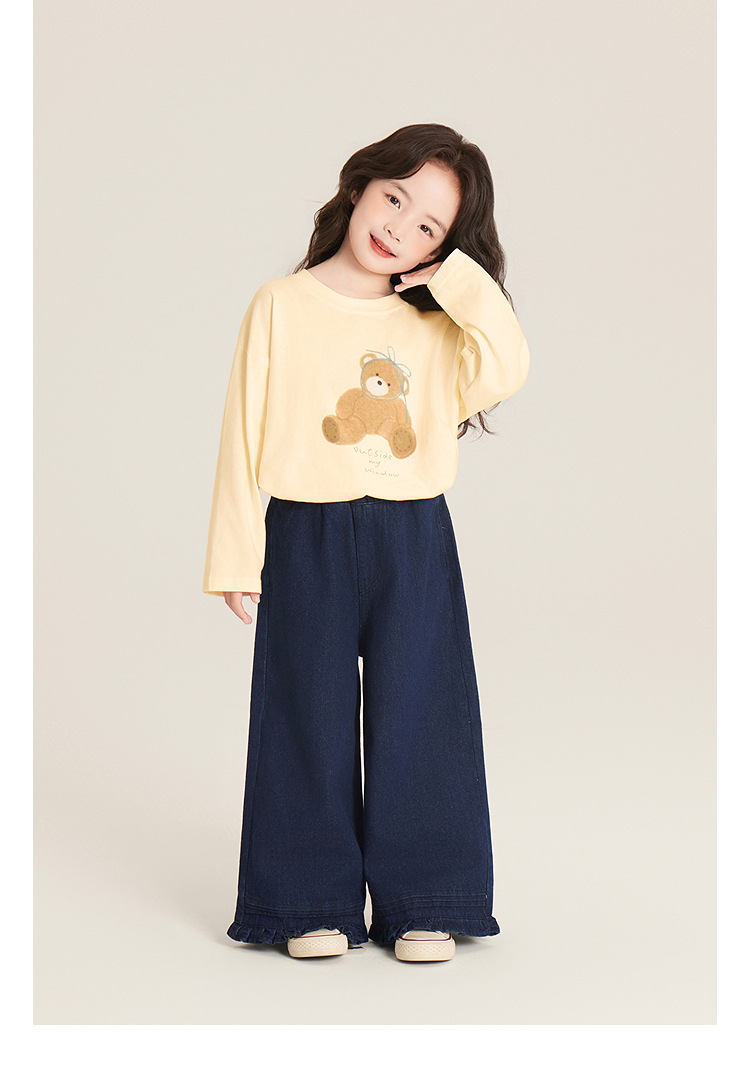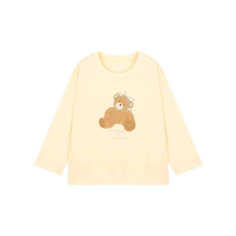 Amybaby Girls 'Top Spring 2025 새로운 어린이 슈퍼 좋은 INS 바람 곰 만화 인쇄 긴 소매 티셔츠스토어 가기