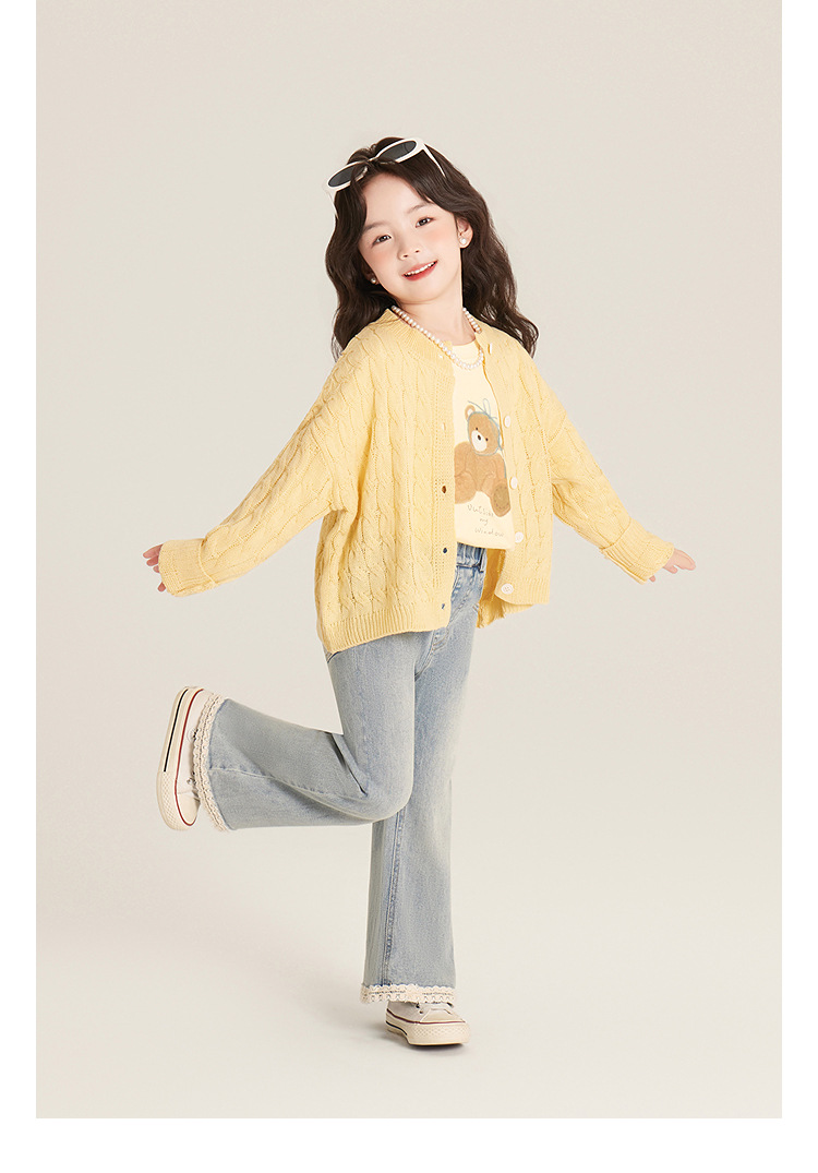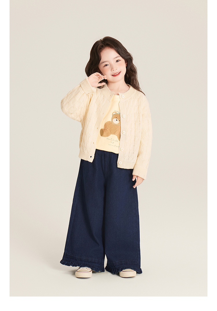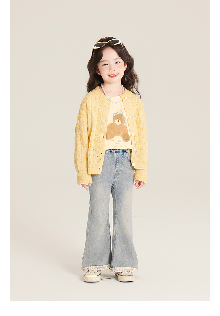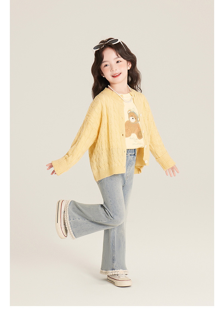 Amybaby Girls 'Top Spring 2025 새로운 어린이 슈퍼 좋은 INS 바람 곰 만화 인쇄 긴 소매 티셔츠스토어 가기