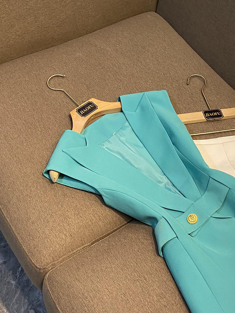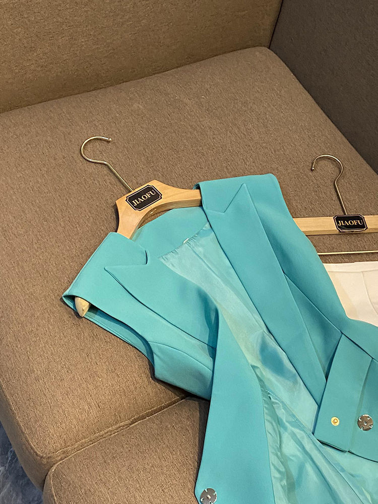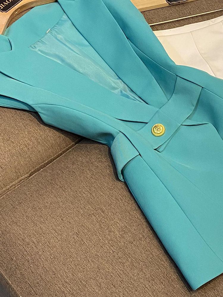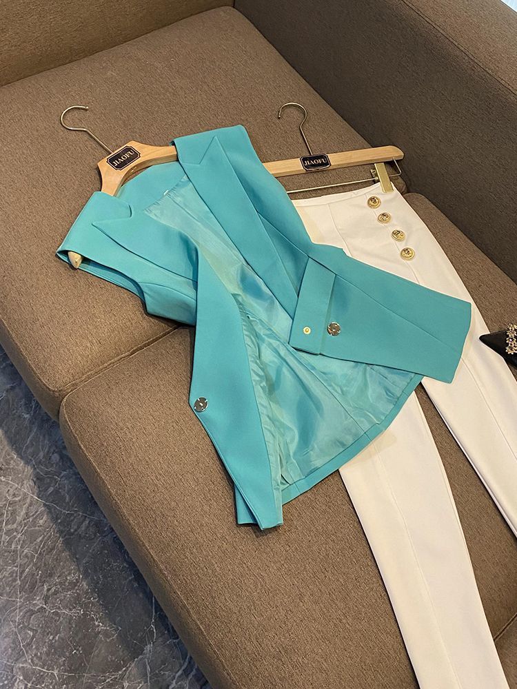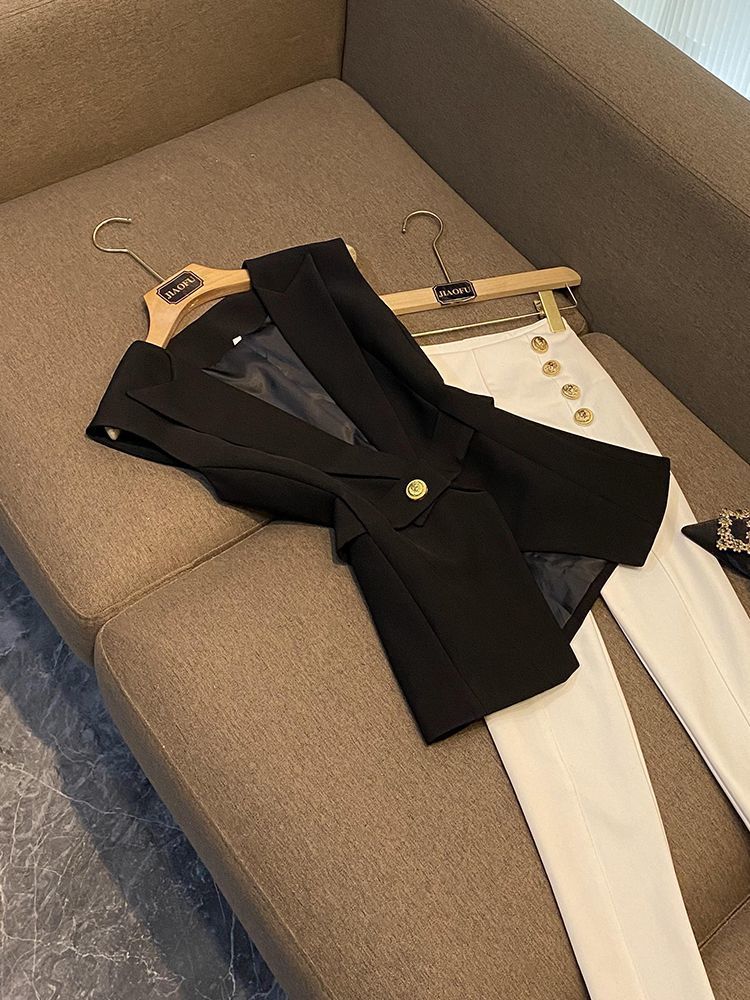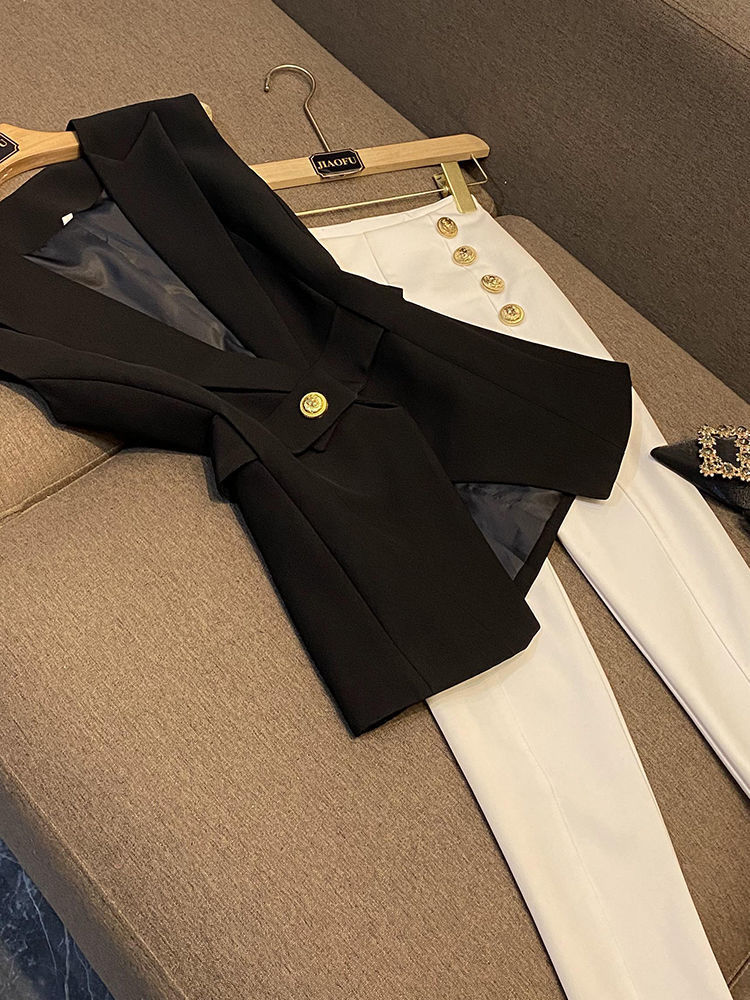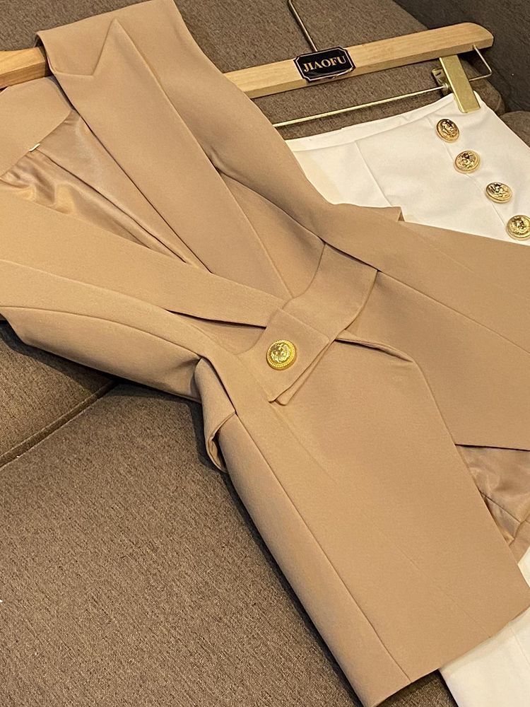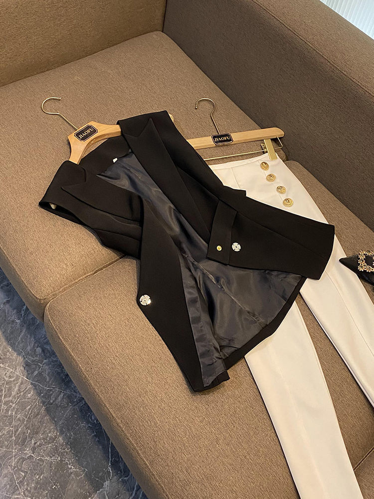 봄 2024 폭발 패션 새로운 디자인 벨트 민소매 슬림 핏 에어 세트 조끼 여성 조끼