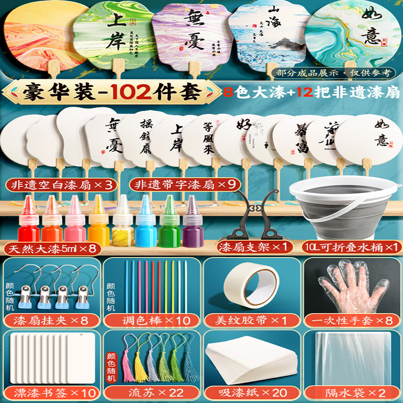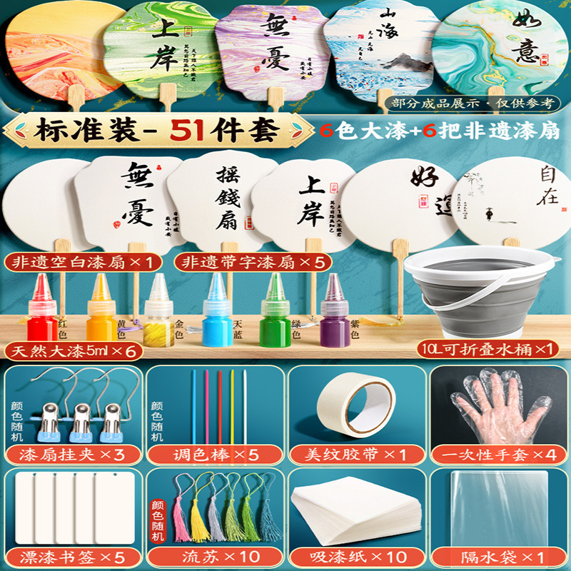 DIY 래커 세트 래커 부채 재료 패키지 어린이 날 선물 제작 래커 부채 세트 1