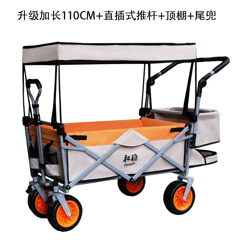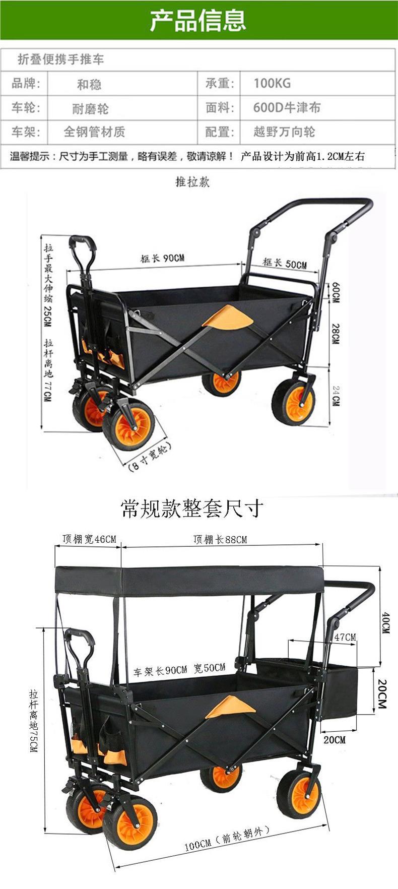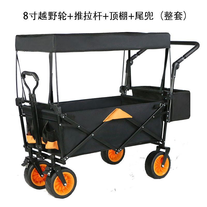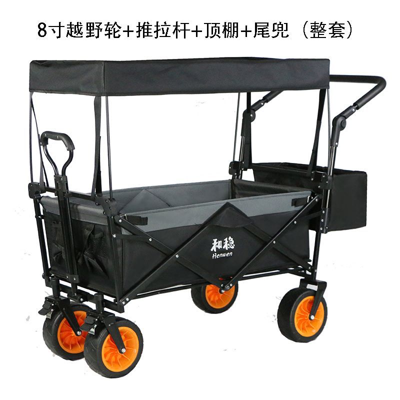 # 야외 캠핑카, 푸시풀 겸용 접이식 트롤리, 캠핑 피크닉 소형 트레일러, 확장형 리클라이닝 홈, 무료 배송스토어 가기