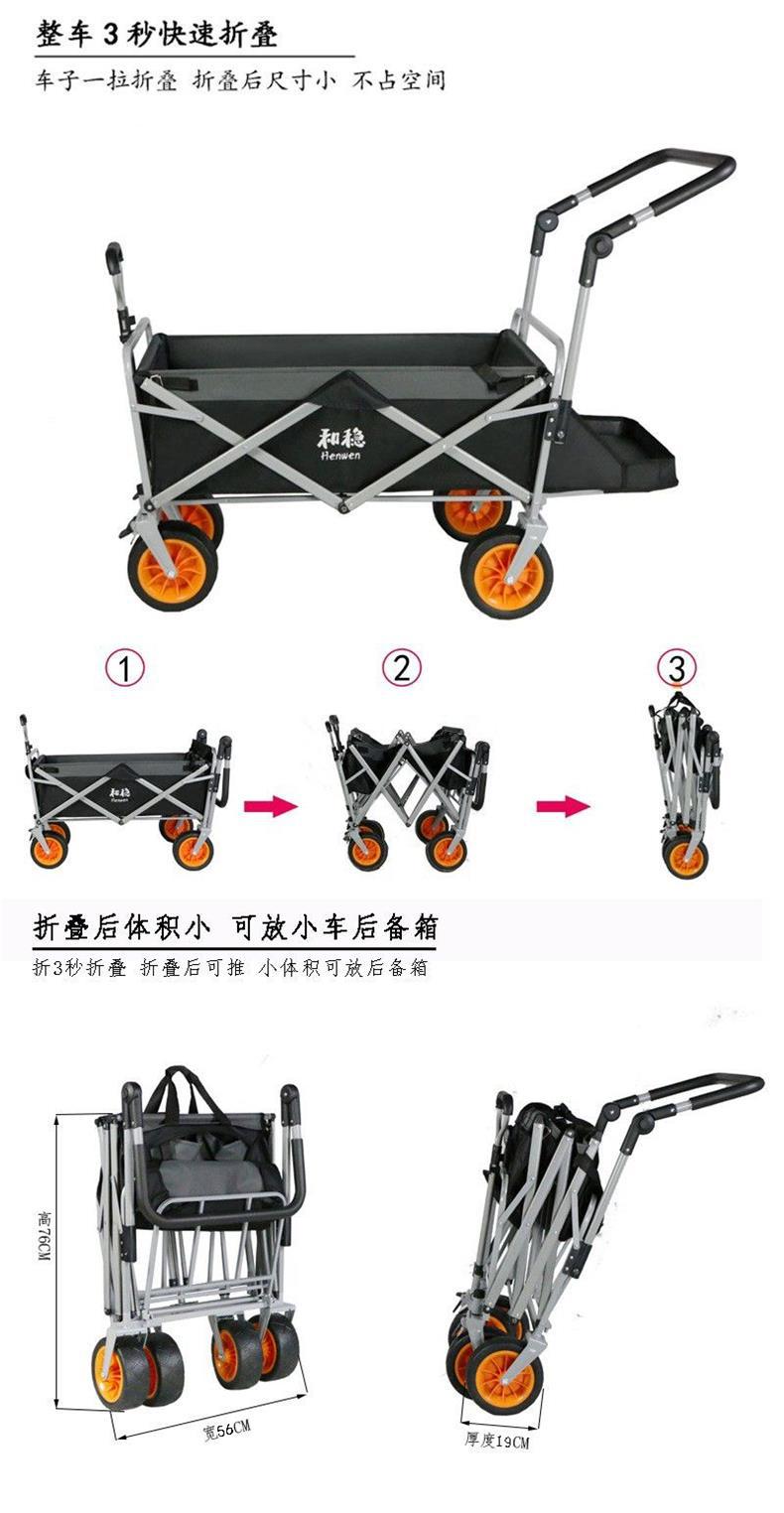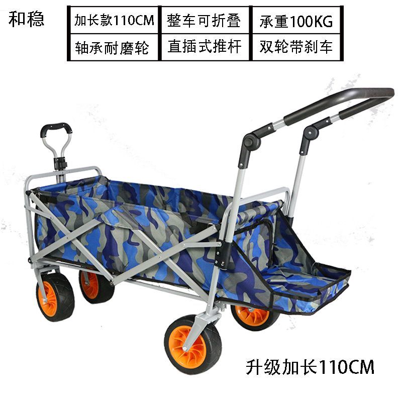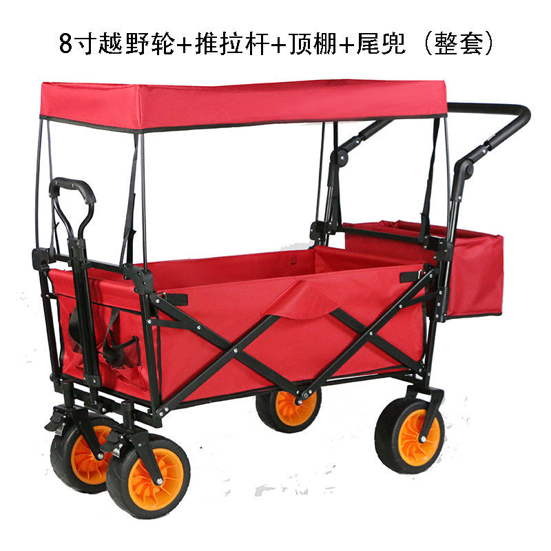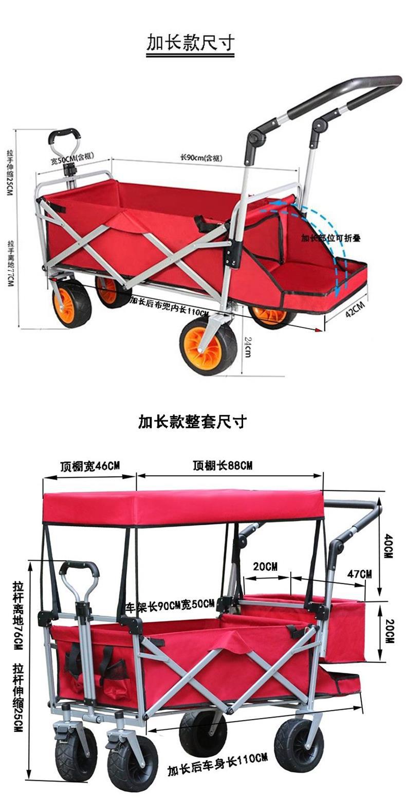 # 야외 캠핑카, 푸시풀 겸용 접이식 트롤리, 캠핑 피크닉 소형 트레일러, 확장형 리클라이닝 홈, 무료 배송스토어 가기