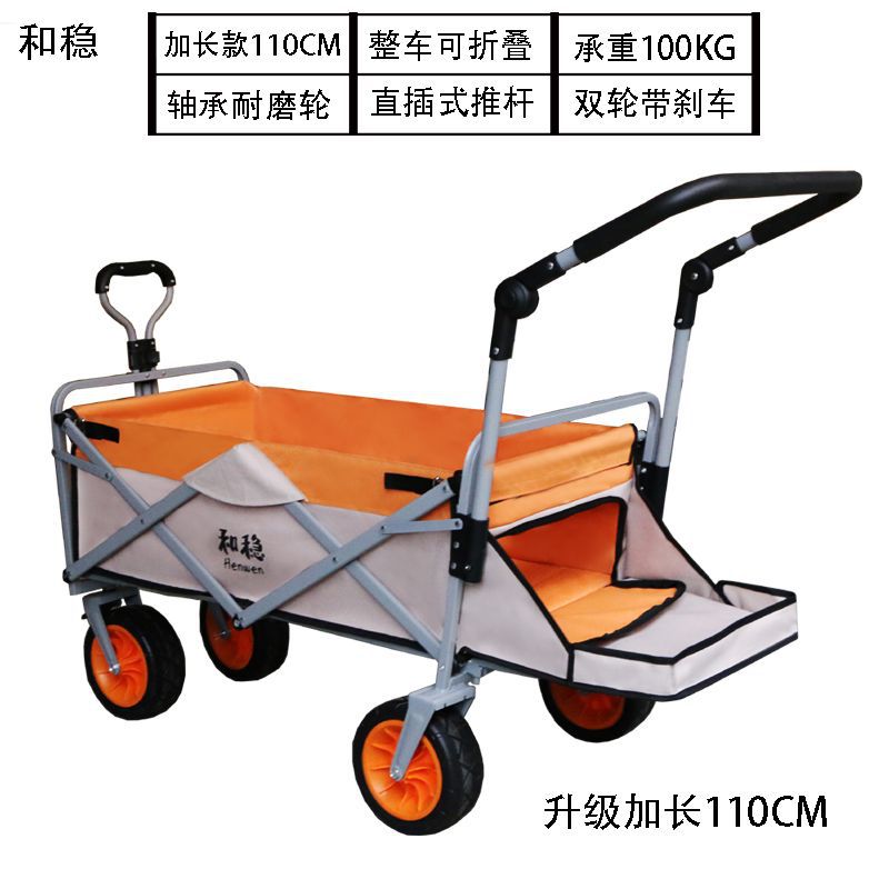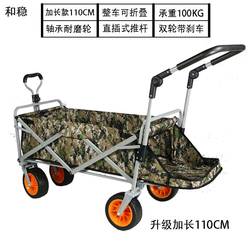 # 야외 캠핑카, 푸시풀 겸용 접이식 트롤리, 캠핑 피크닉 소형 트레일러, 확장형 리클라이닝 홈, 무료 배송