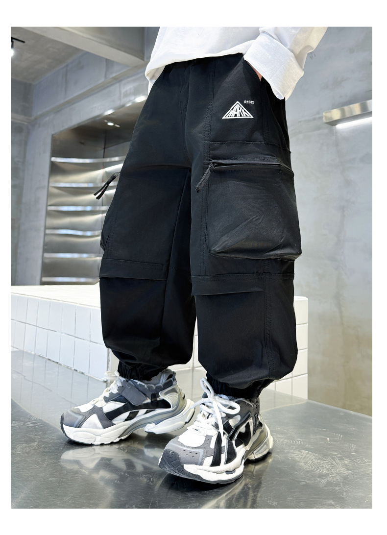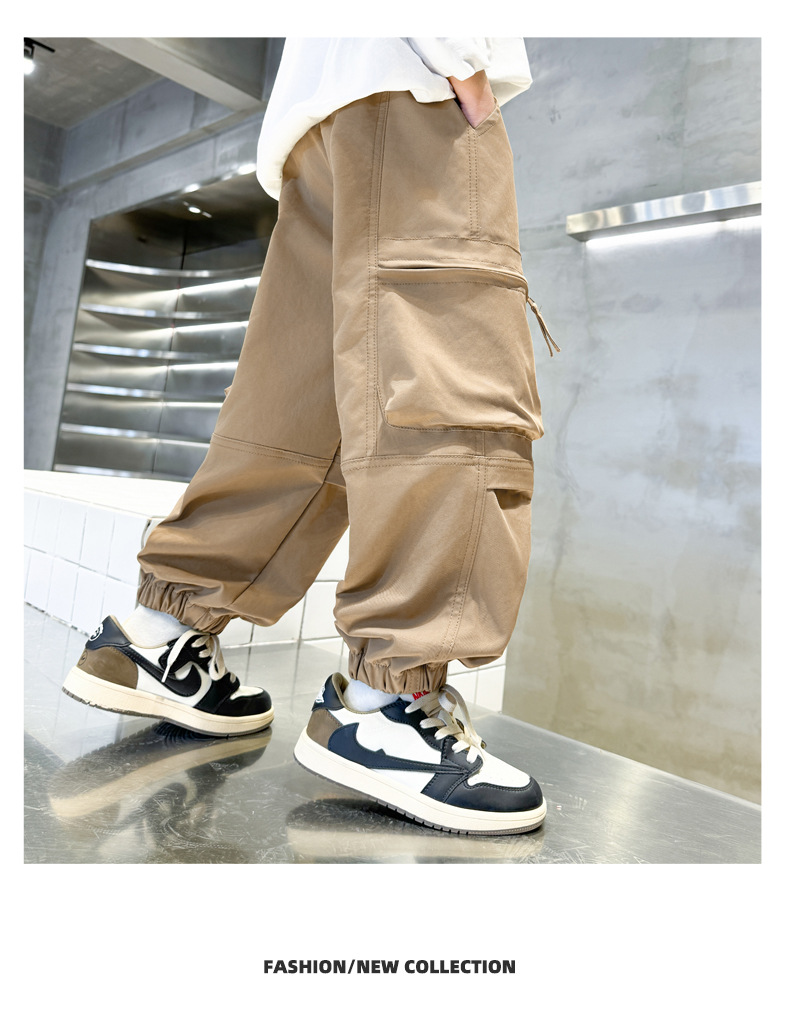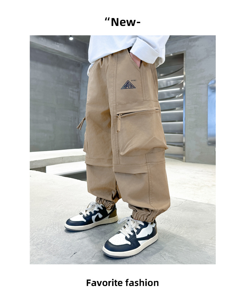 아동복 소년 봄 착용 도구 바지 새로운 2025 소년 바지 대형 어린이 캐주얼 스포츠 바지 봄과 가을 트렌디