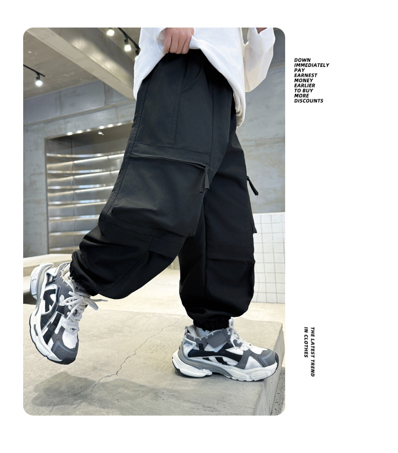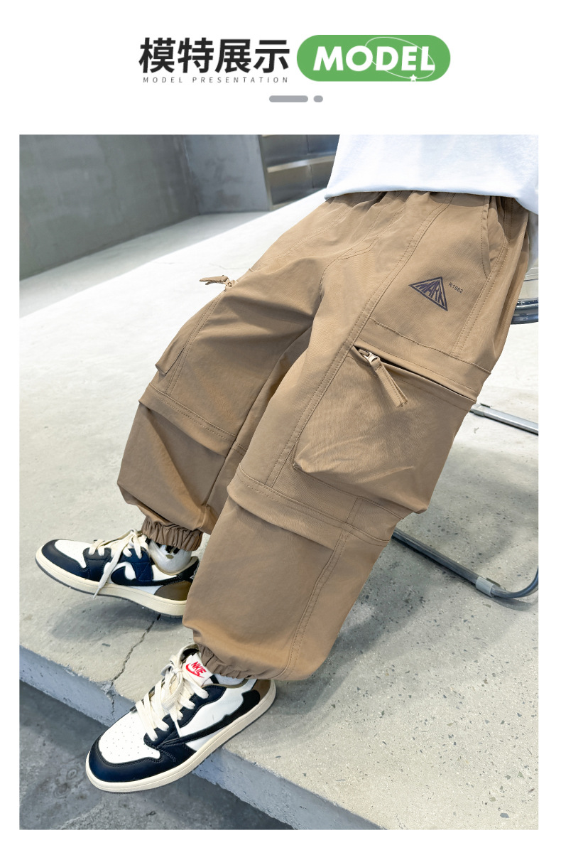 아동복 소년 봄 착용 도구 바지 새로운 2025 소년 바지 대형 어린이 캐주얼 스포츠 바지 봄과 가을 트렌디스토어 가기