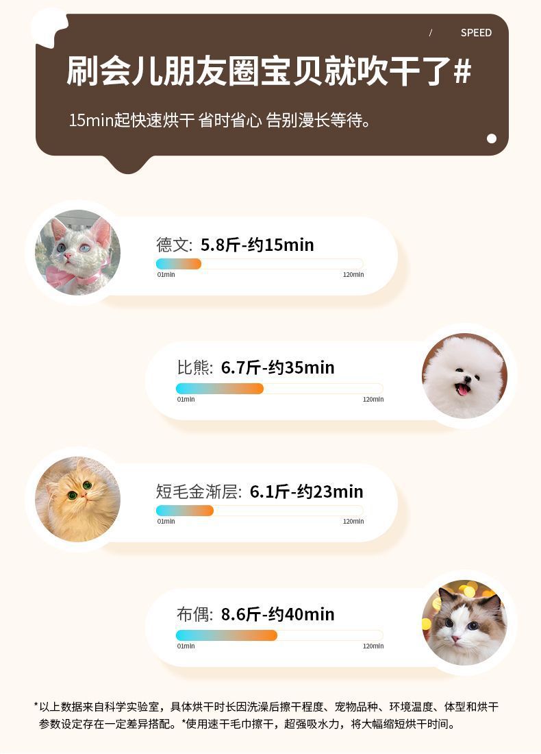 • 800W [저소음, 편안함, 느린 건조] 소심한 고양이와 강아지에게 권장