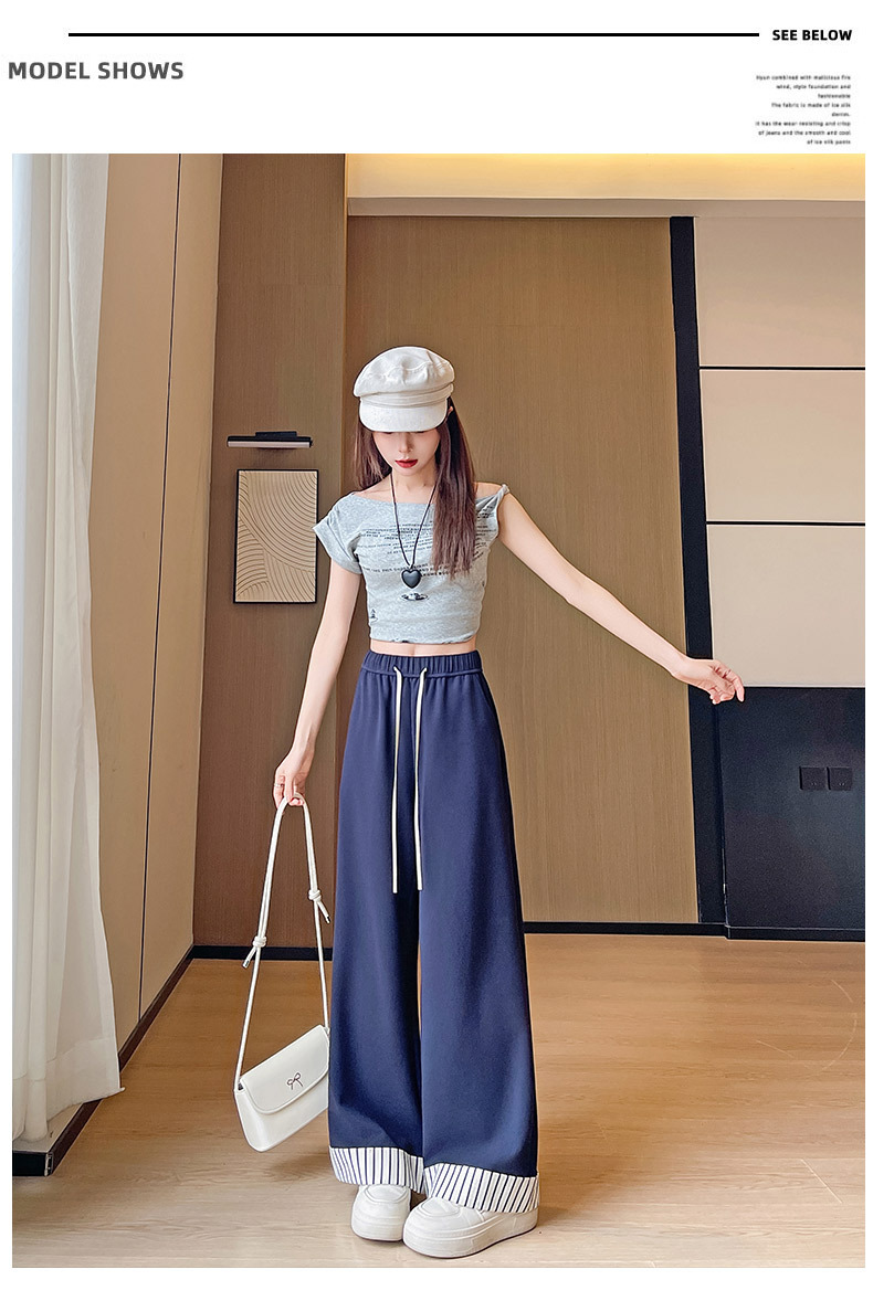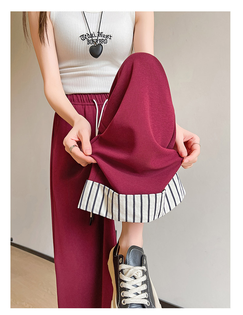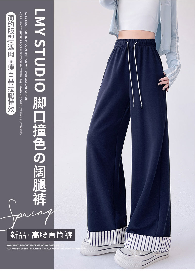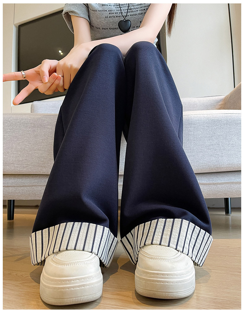 턴 업 스트라이프 좁은 넓은 다리 바지 여성의 2025 새로운 높은 허리 투약 느슨한 직선 캐주얼 바지 여성의 봄과 가을스토어 가기