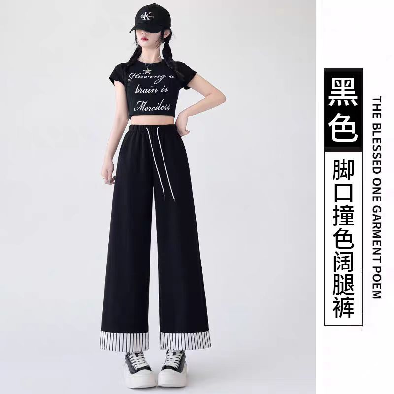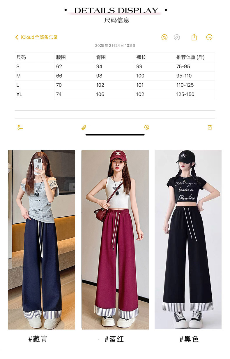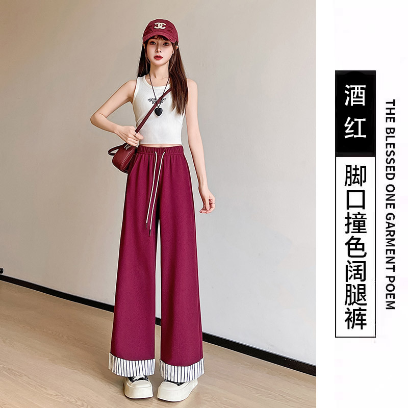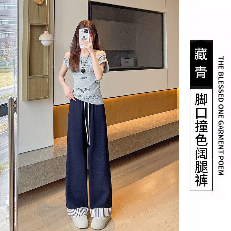 턴 업 스트라이프 좁은 넓은 다리 바지 여성의 2025 새로운 높은 허리 투약 느슨한 직선 캐주얼 바지 여성의 봄과 가을스토어 가기