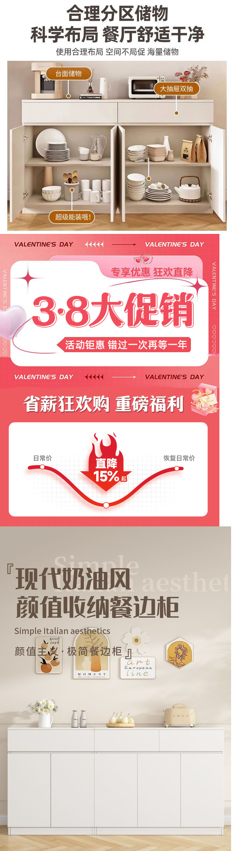 사이드 캐비닛 벽 크림 스타일 가정용 캐비닛 주방 그릇 발코니 보관 캐비닛 통합스토어 가기