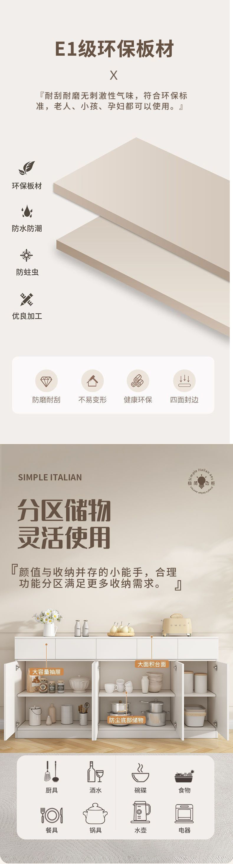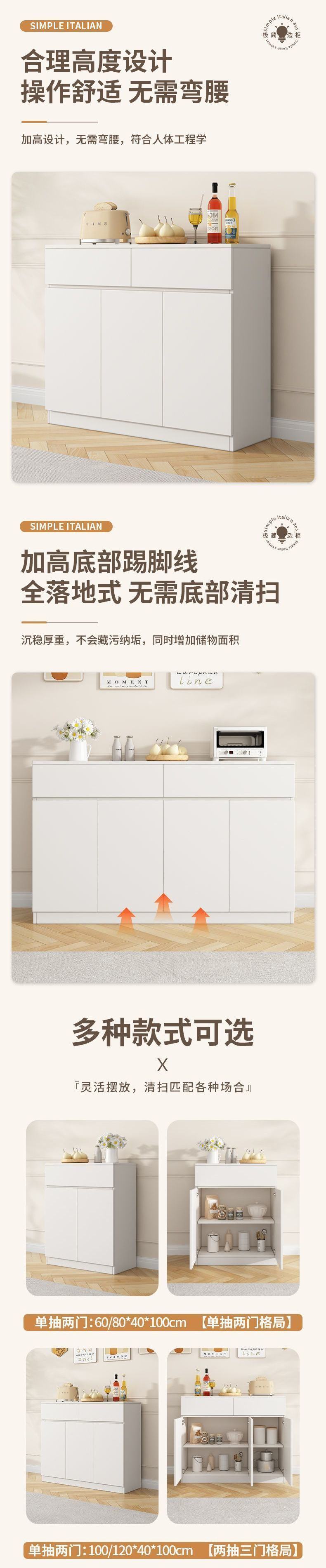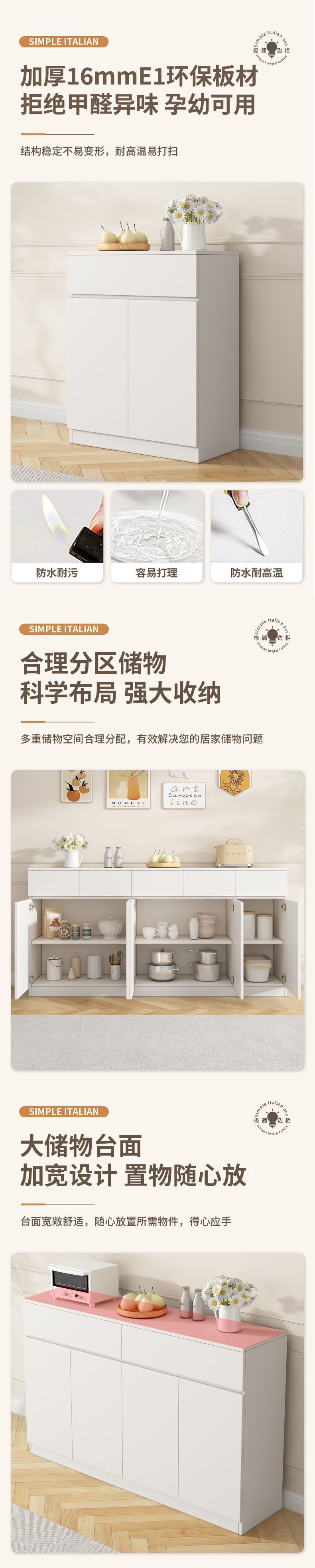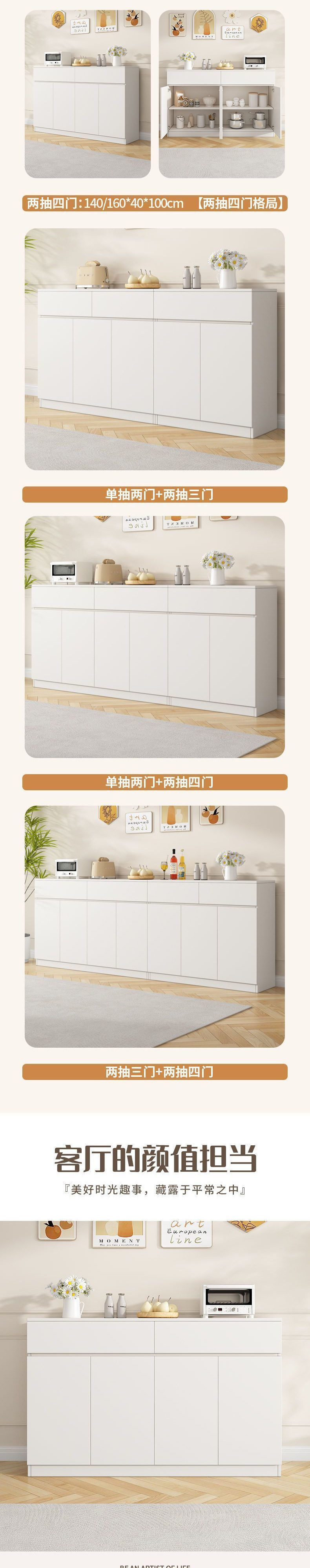 사이드 캐비닛 벽 크림 스타일 가정용 캐비닛 주방 그릇 발코니 보관 캐비닛 통합