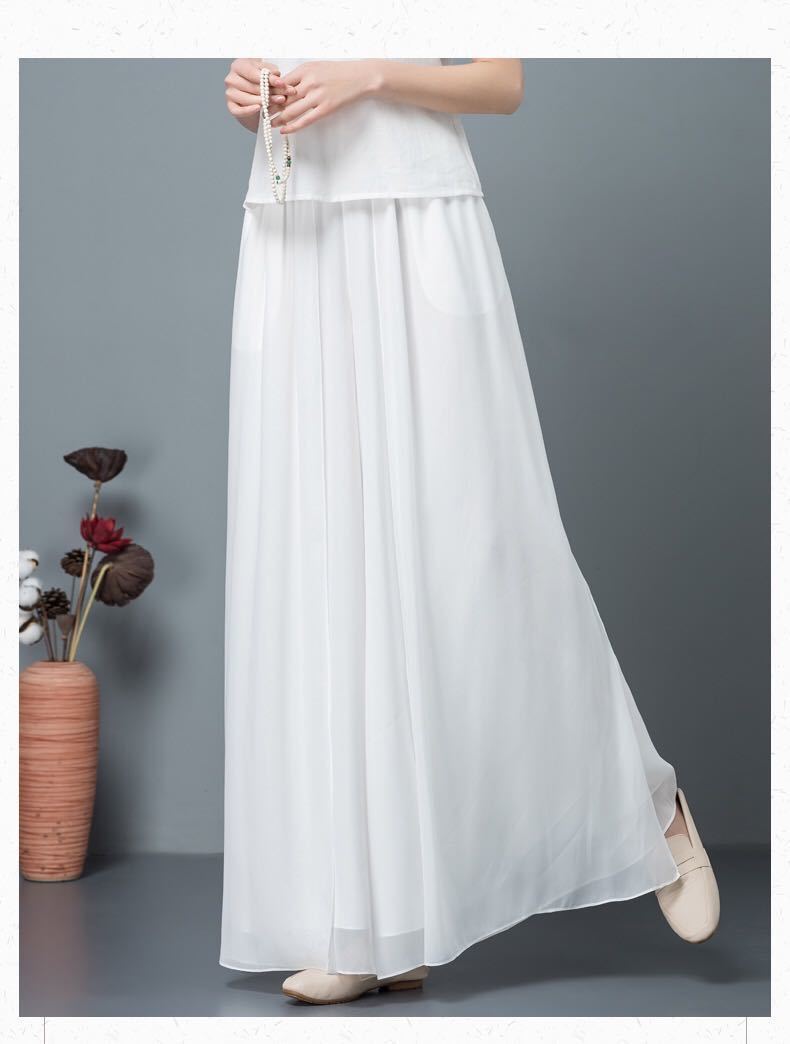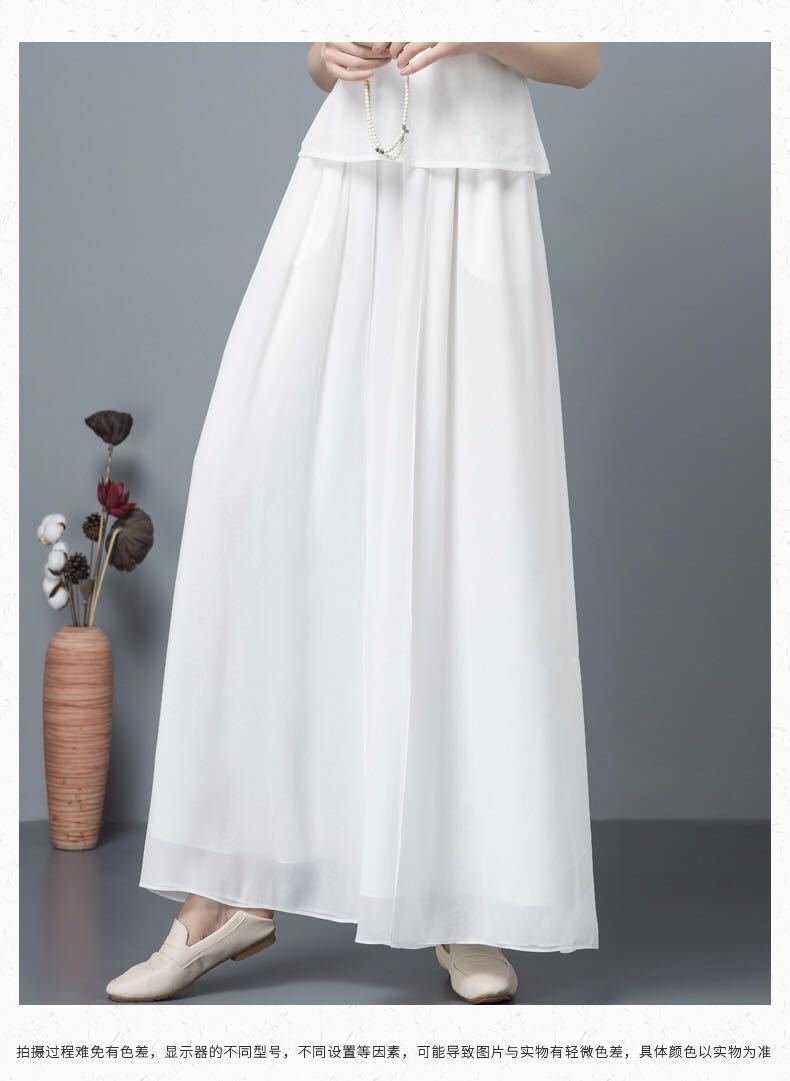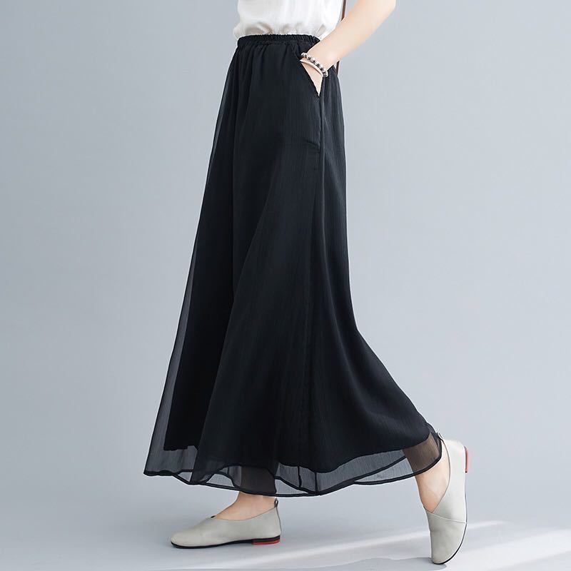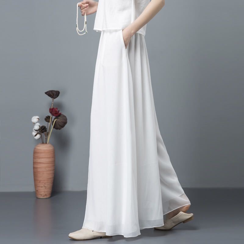 플러스 포켓 봄 여름과 가을 하이 퀄리티 아이스 실크 와이드 레그 팬츠 여성용 데프 느낌 캐주얼 건강 박물관 아트 스타일 스커트 바지 여성