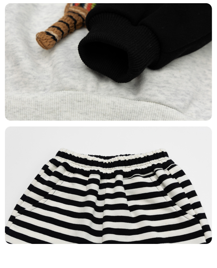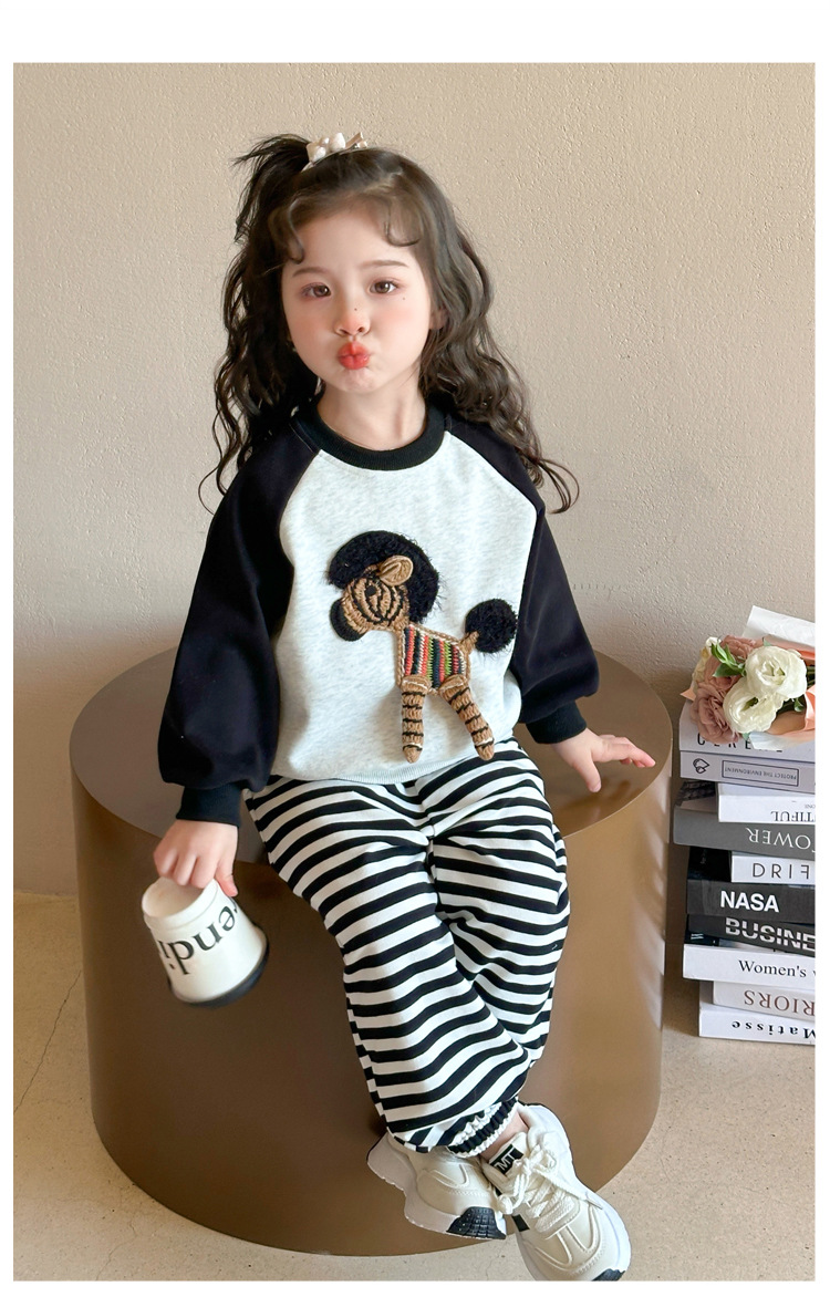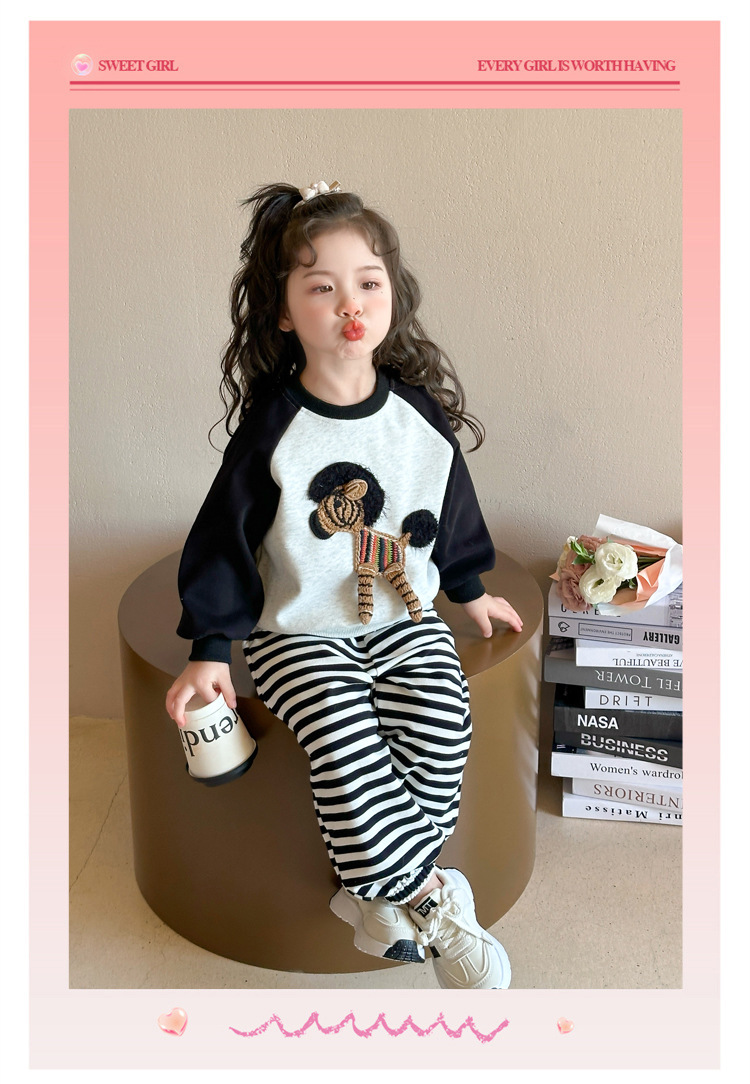 소녀 스웨트 셔츠 세트 봄과 가을 2025 어린이 만화 탑 스트라이프 와이드 레그 바지 캐주얼 스포츠 바지 투피스 세트스토어 가기